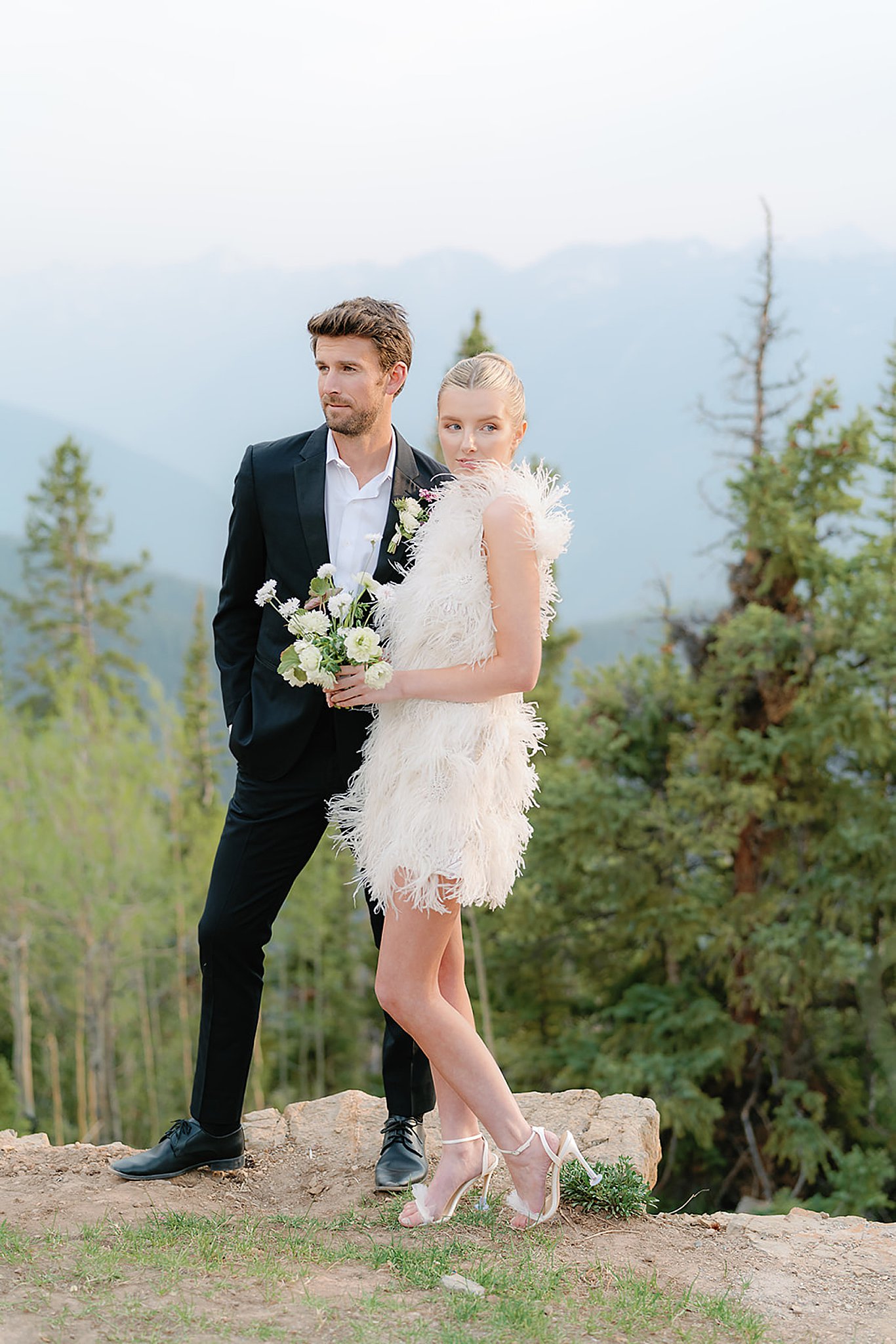 Planning: Slater Events Styling: Silk and Style Bridal Photography: Magi Fisher Video: Keever Films Floral: New Leaf Telluride Hair and Makeup: GR Hair + Makeup Venue: The Little Nell Floral Dress: Peter Langner Feather Dress: Naeem Khan Bride White Dress: Reem Acra Shoes: Jimmy Choo Menswear: Stitch and Tie