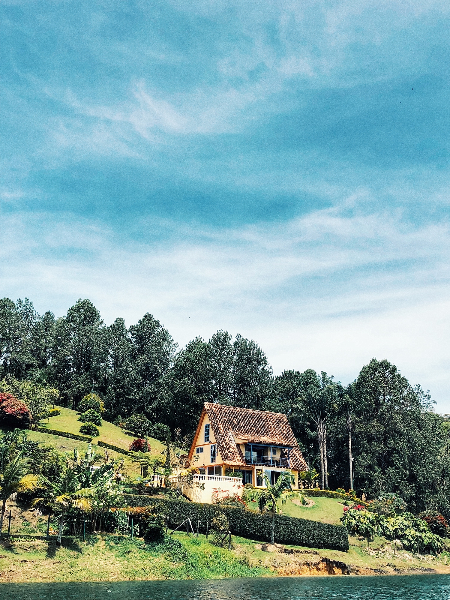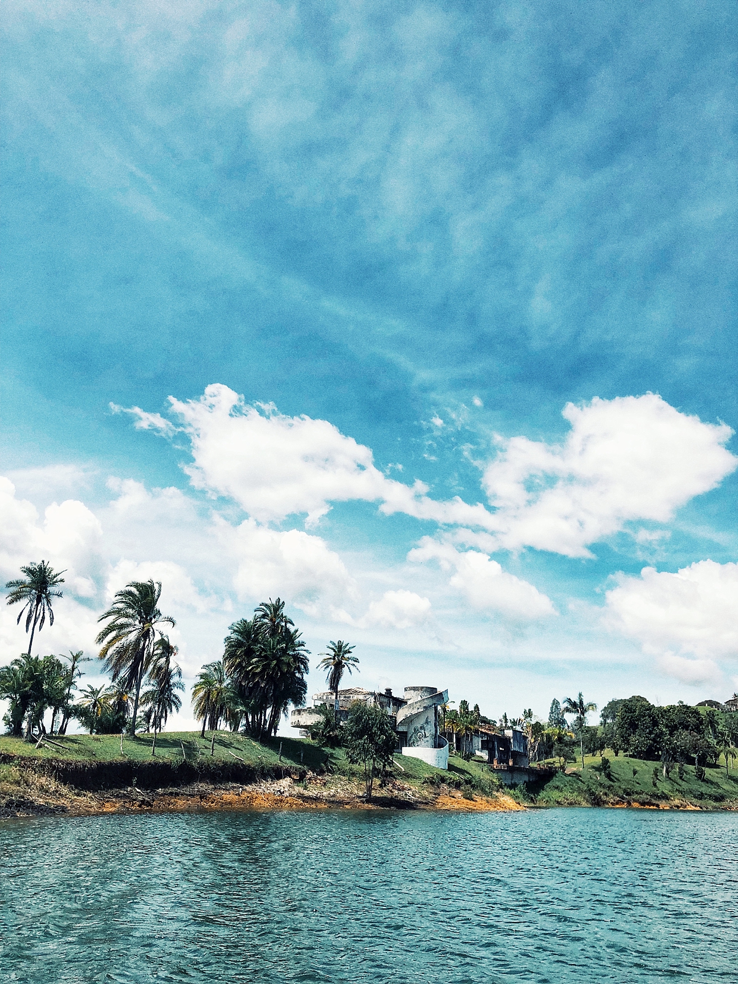 When you enter Guatape, the town is nothing short of unique and vibrant. Bright colors paint the walls and the town is bustling with people. We stayed for three nights, which was more than enough time to see it all. We adventured and walked around the town, climbed the famous Piedra del Penol (a big giant rock with stairs overlooking the area), and one day we rented a jet ski to take out on the water. While jetting around on the ski, we scoped out all the rich Colombian mansions, and even saw Pablo Escobar’s home which was raided and destroyed in 1993.