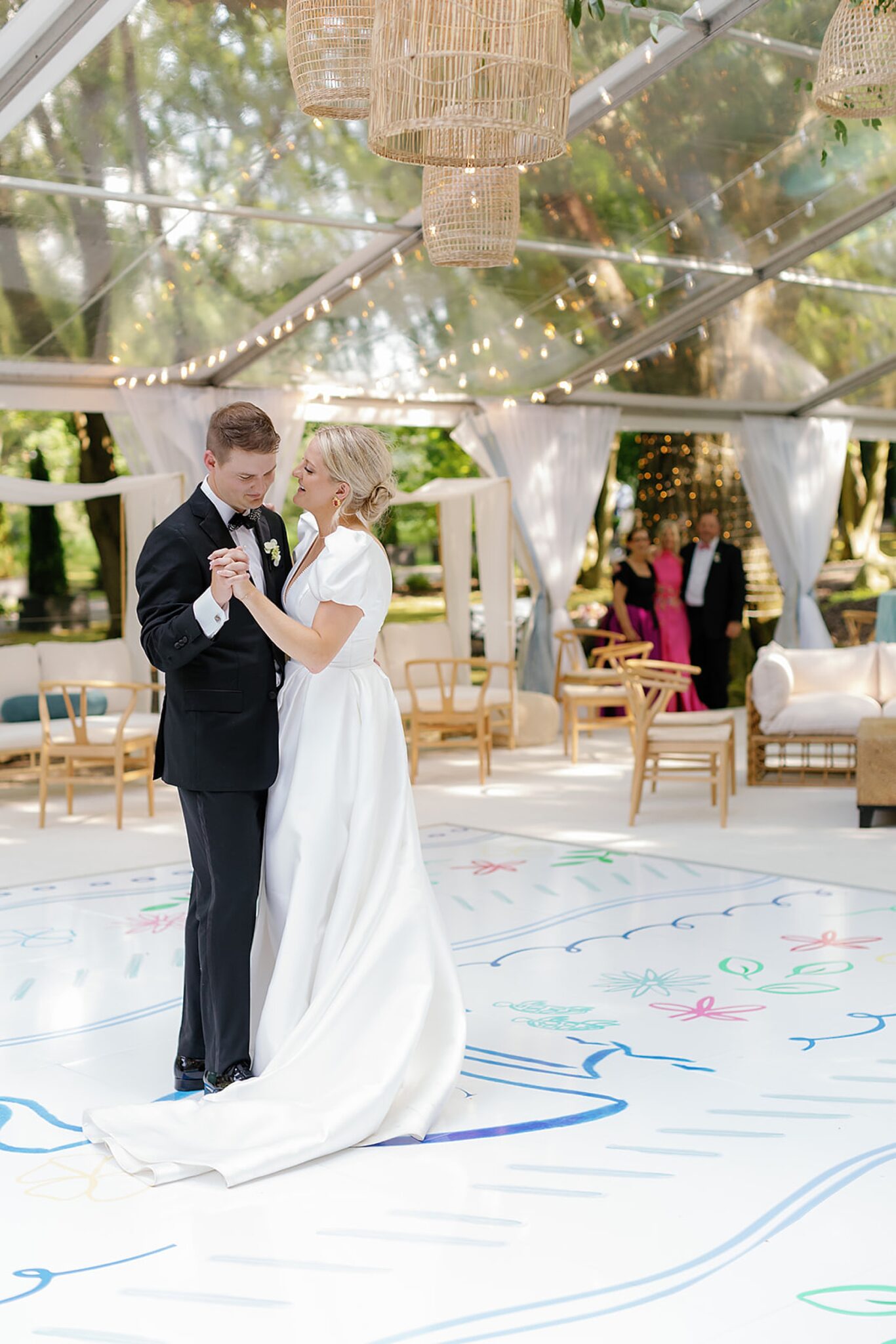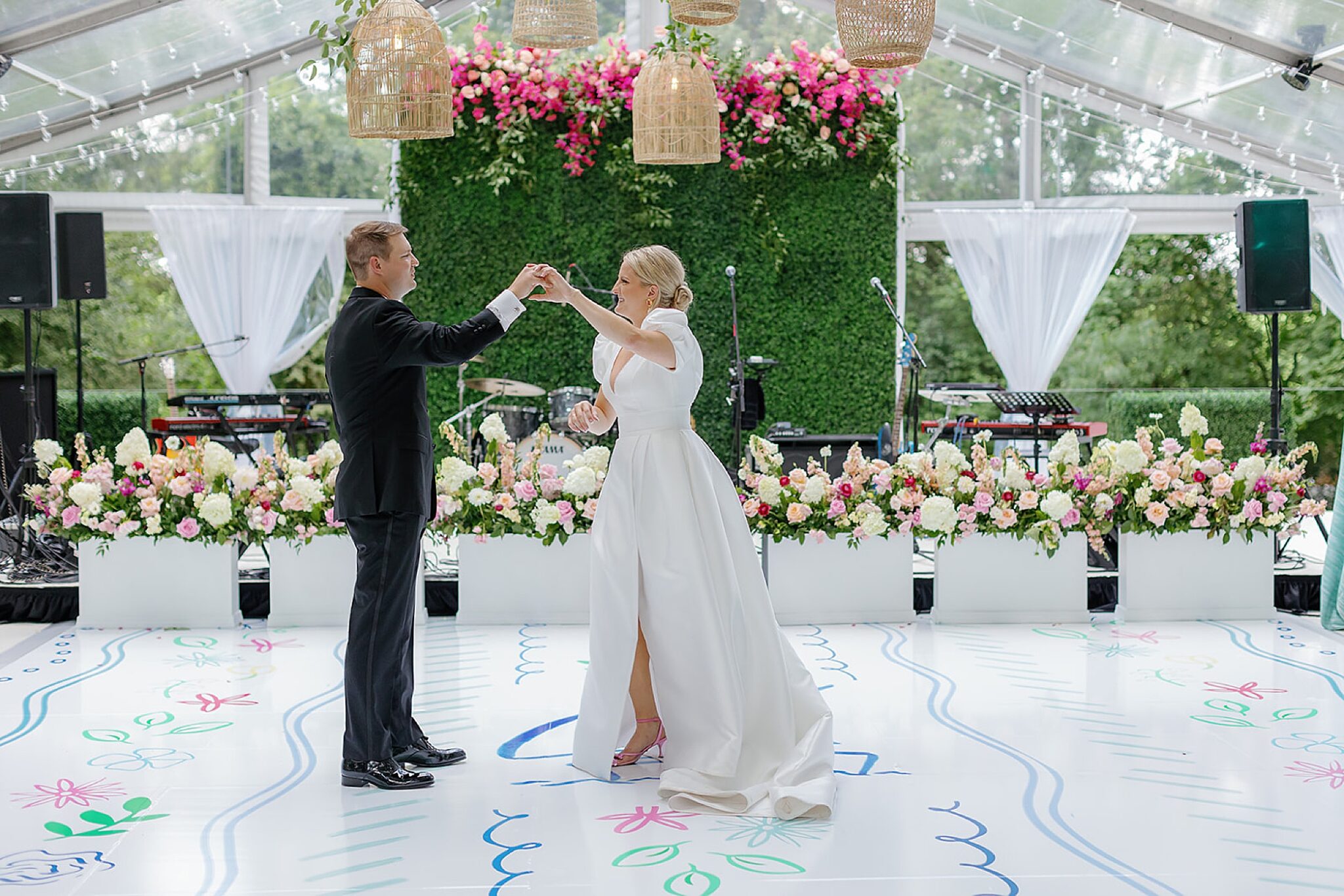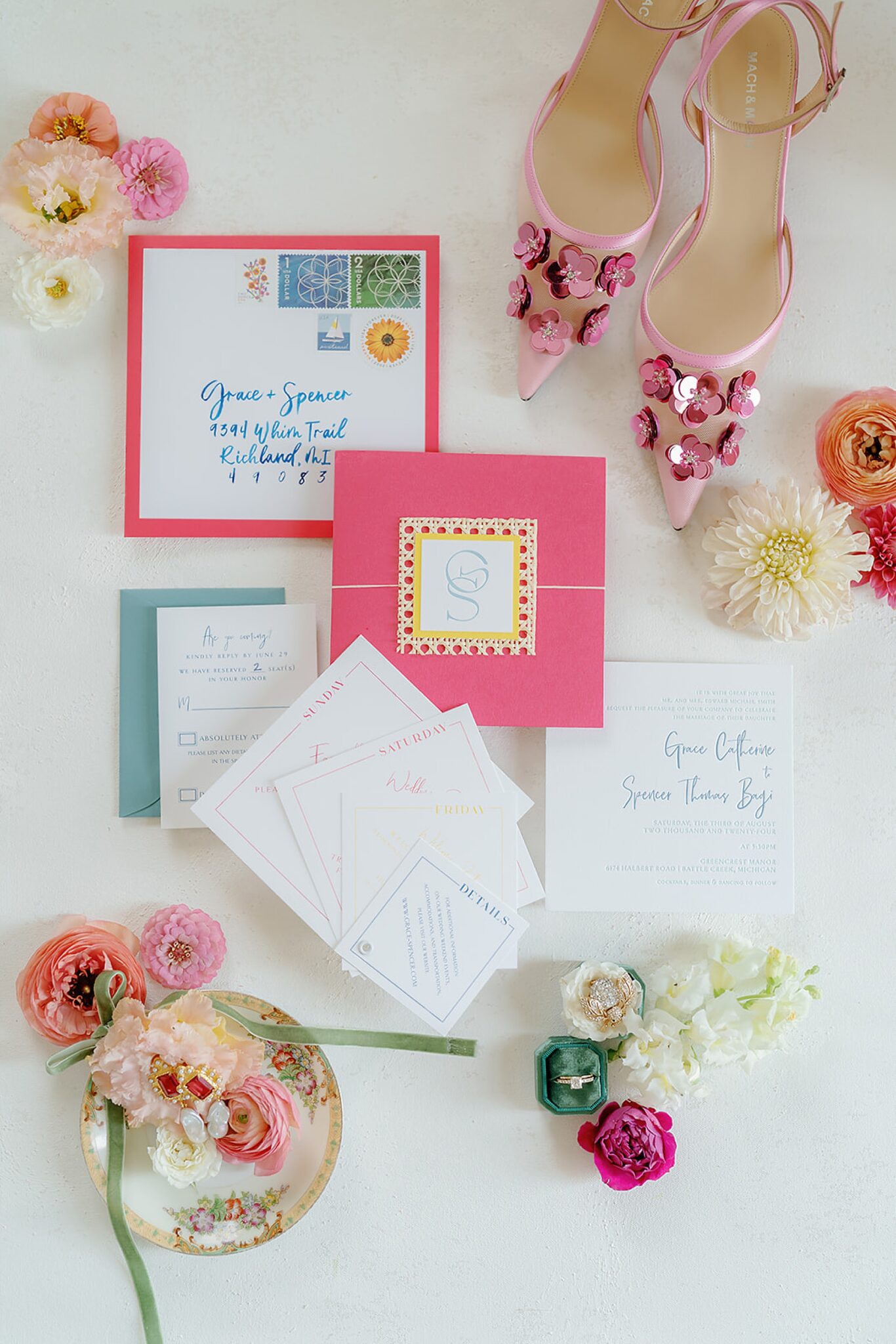 Grace and Spencer’s wedding at Greencrest Manor in Michigan was a celebration that balanced playful color with timeless style. The venue’s historic charm set the stage, while thoughtful design and personal details created an atmosphere that felt both chic and deeply personal.