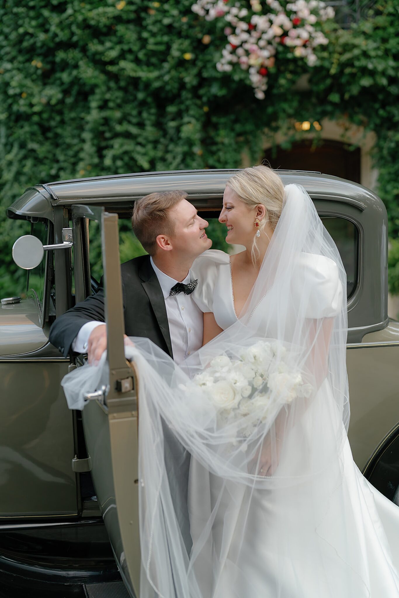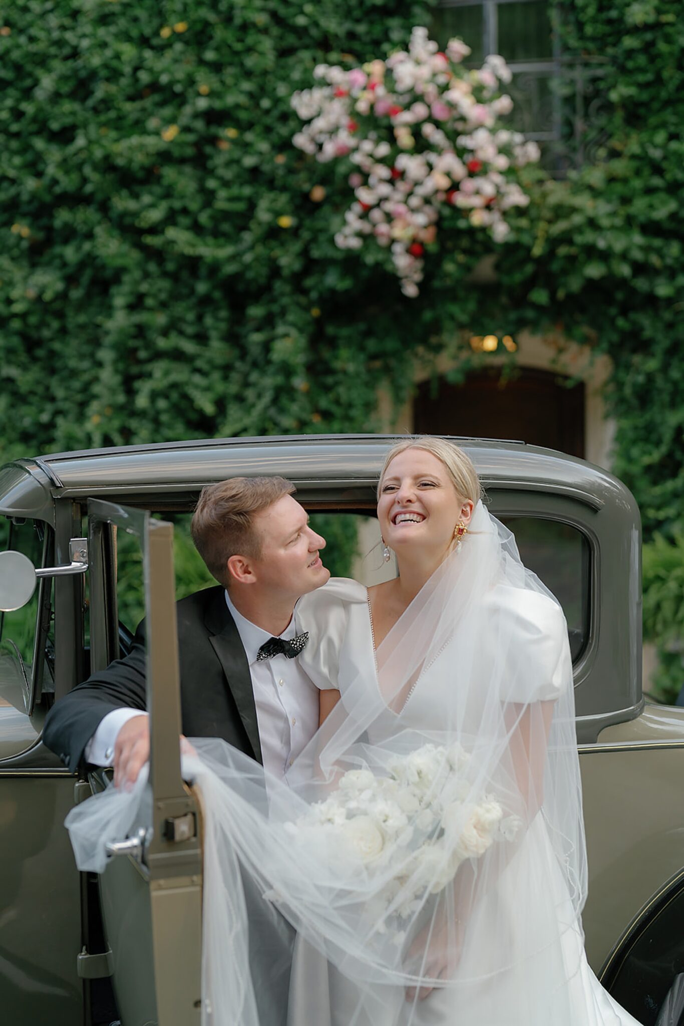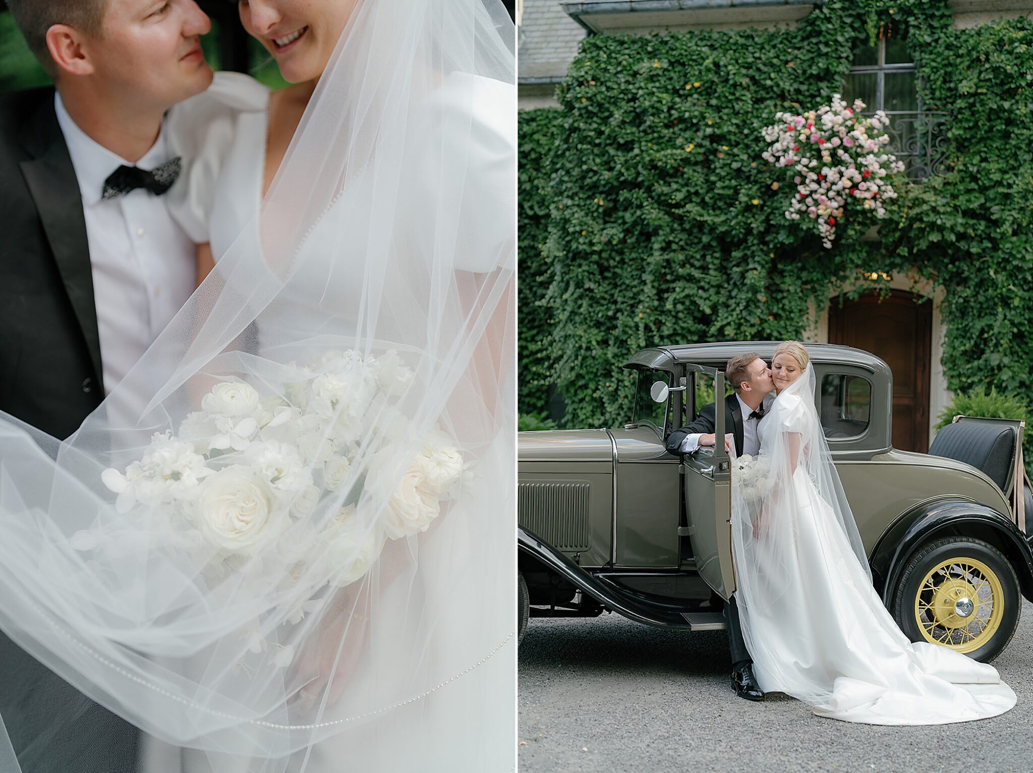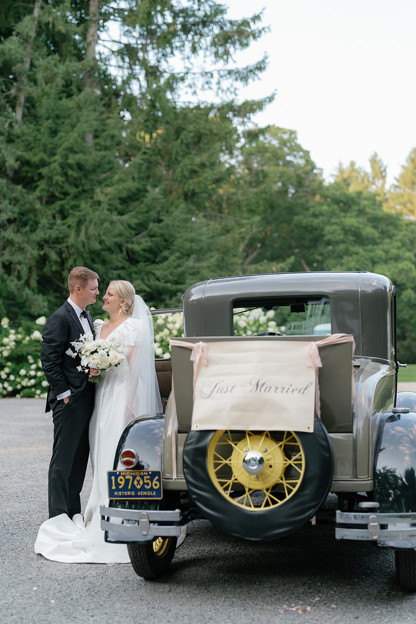 Planned and styled by Modern Day Collective, the day featured vibrant florals, layered textures, and an aesthetic that leaned into fashion-forward elegance. Grace stunned with hair and makeup by Reva, while Spencer’s family history was honored through a classic car that added a meaningful touch to their portraits.