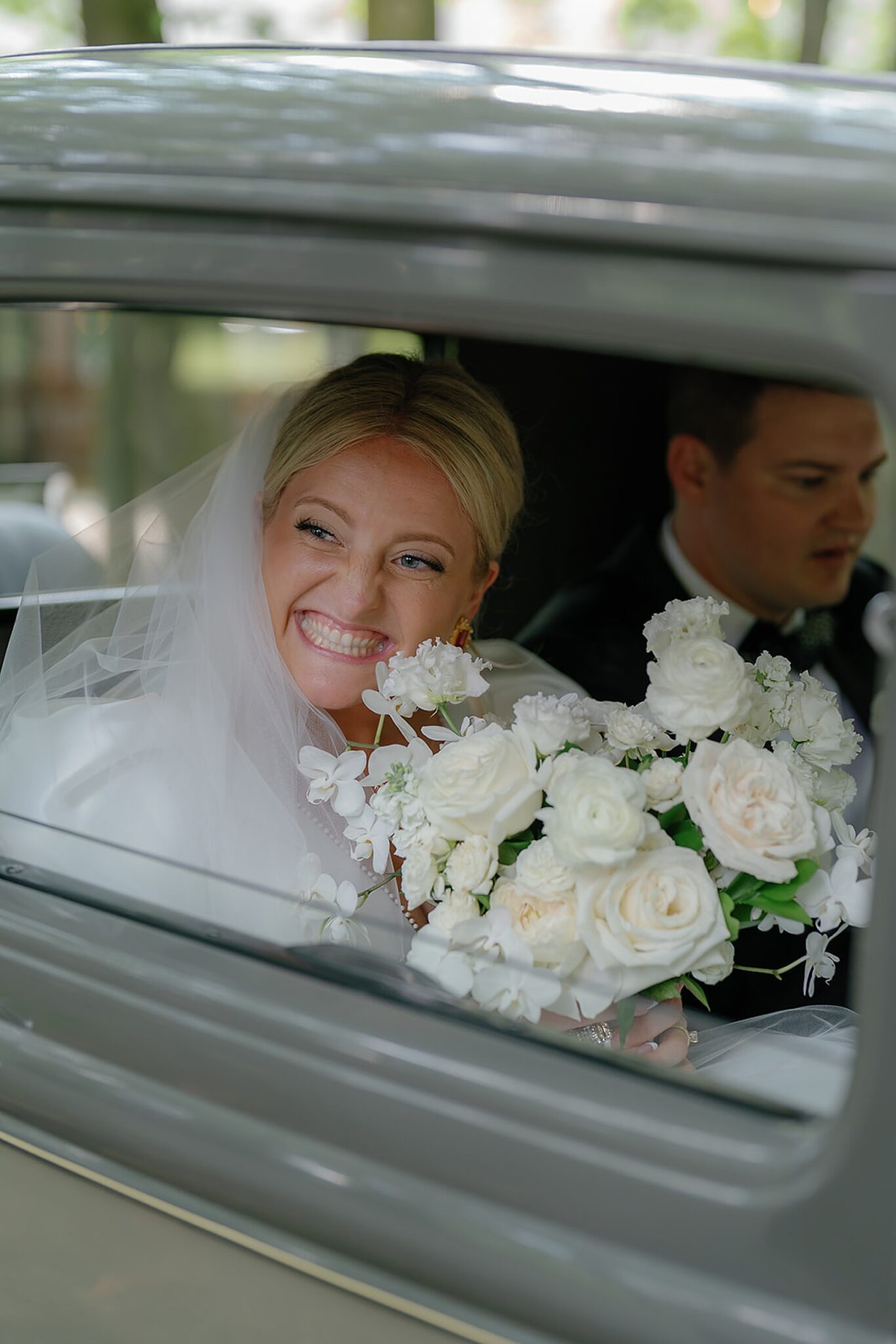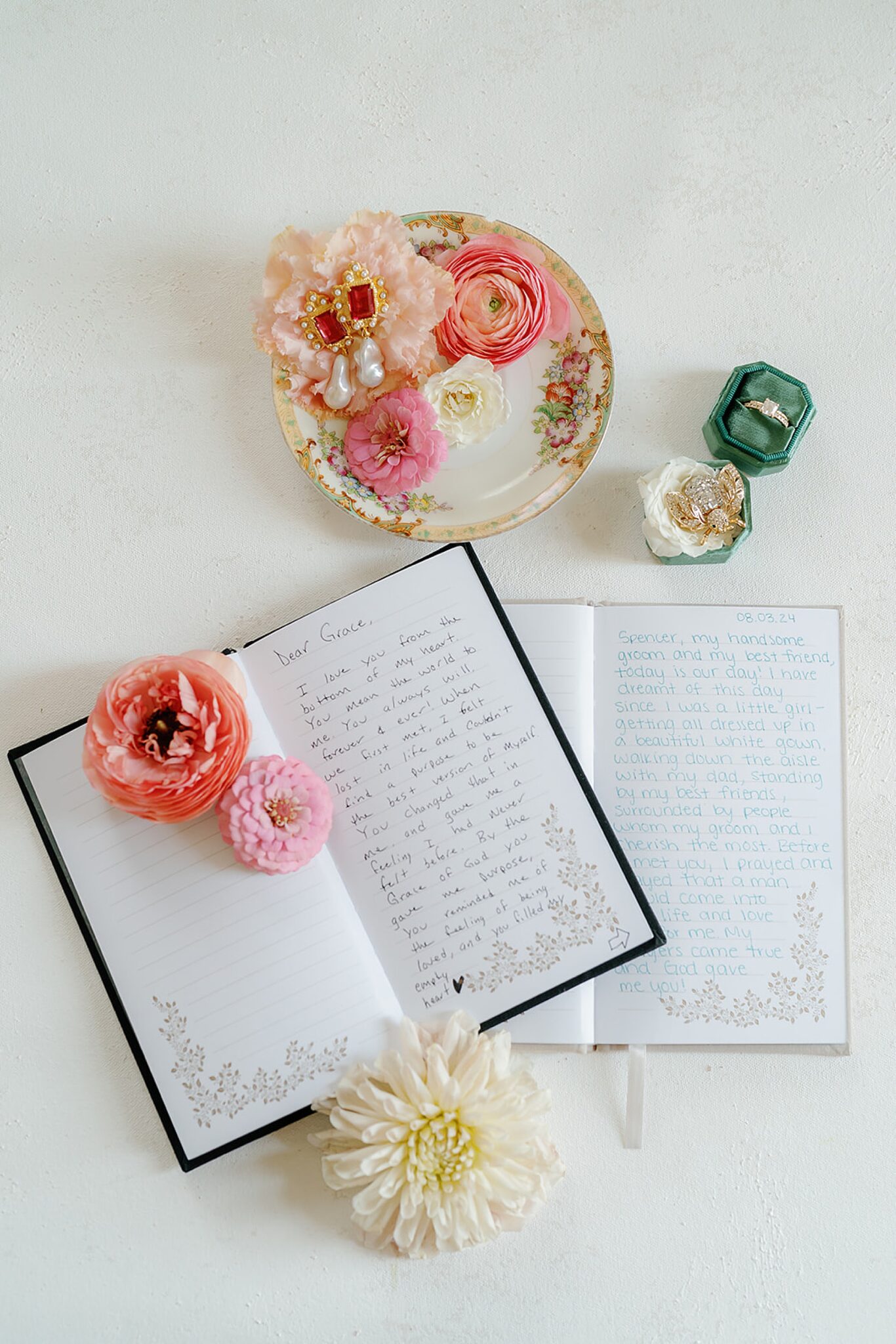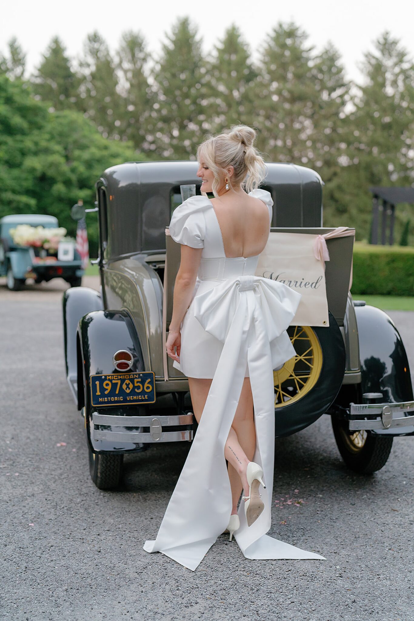 Planned and styled by Modern Day Collective, the day featured vibrant florals, layered textures, and an aesthetic that leaned into fashion-forward elegance. Grace stunned with hair and makeup by Reva, while Spencer’s family history was honored through a classic car that added a meaningful touch to their portraits.