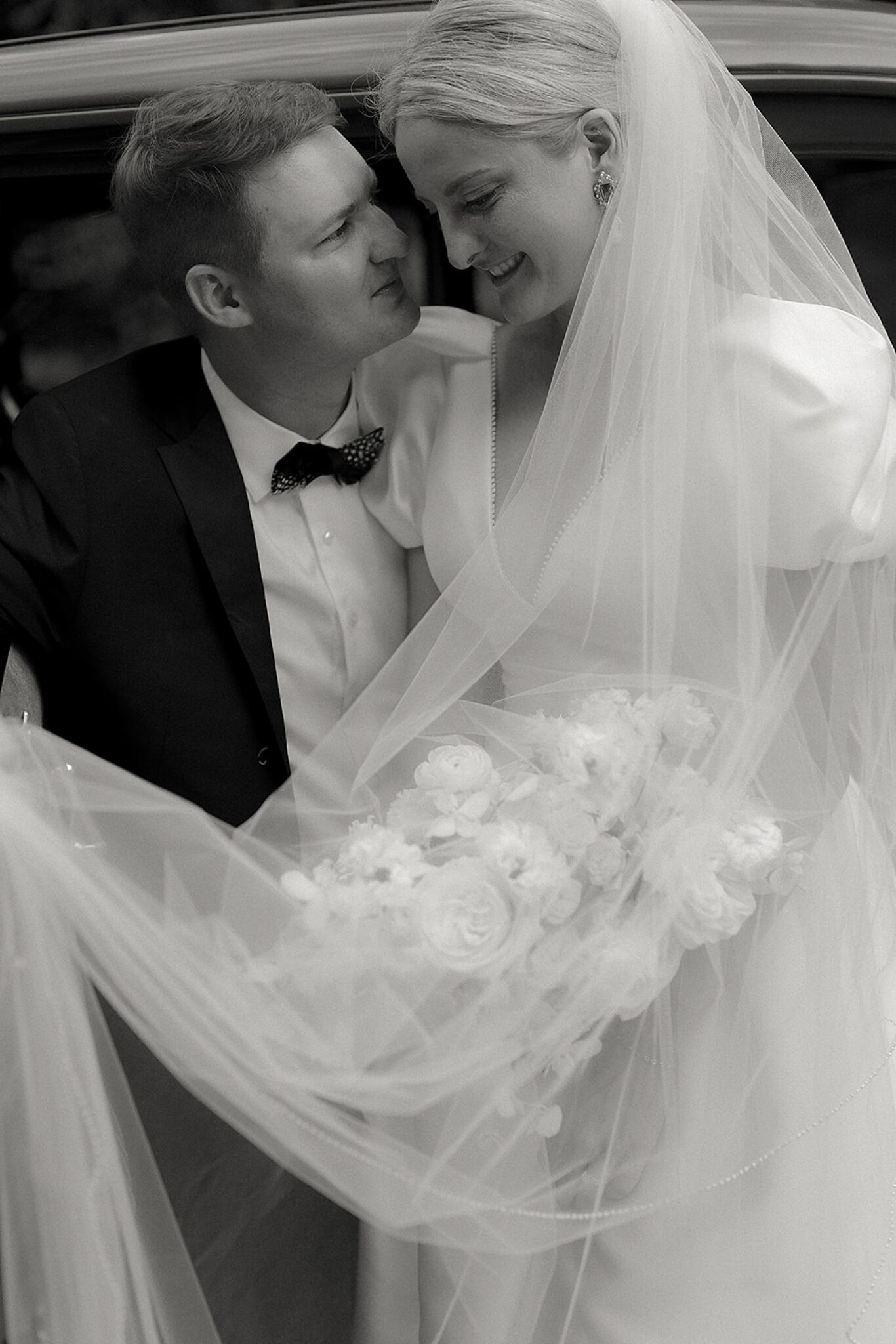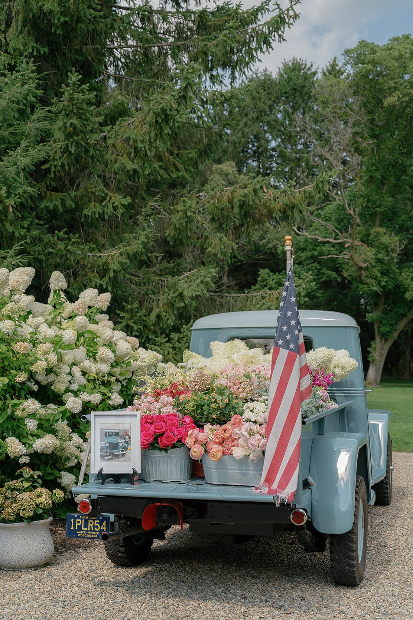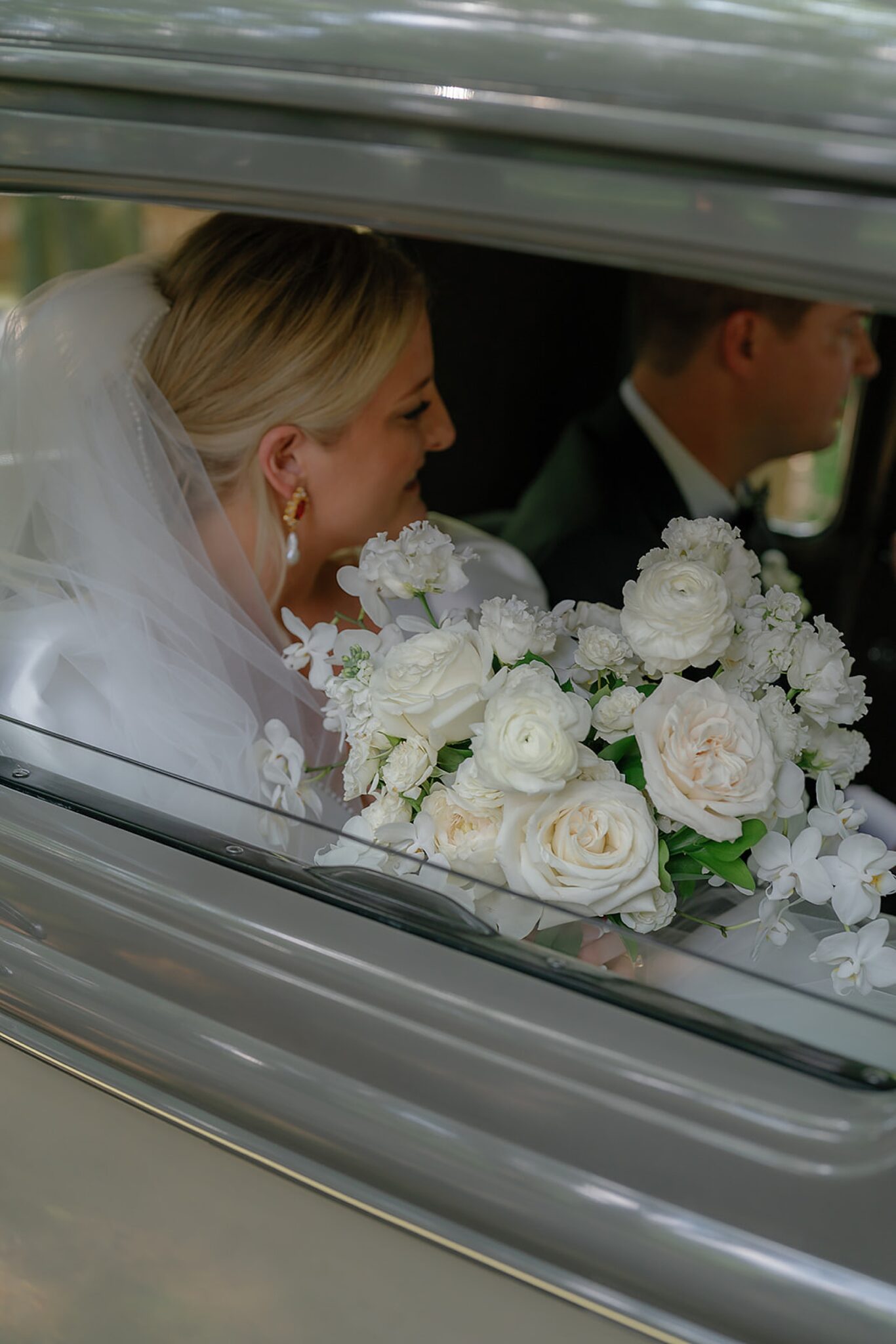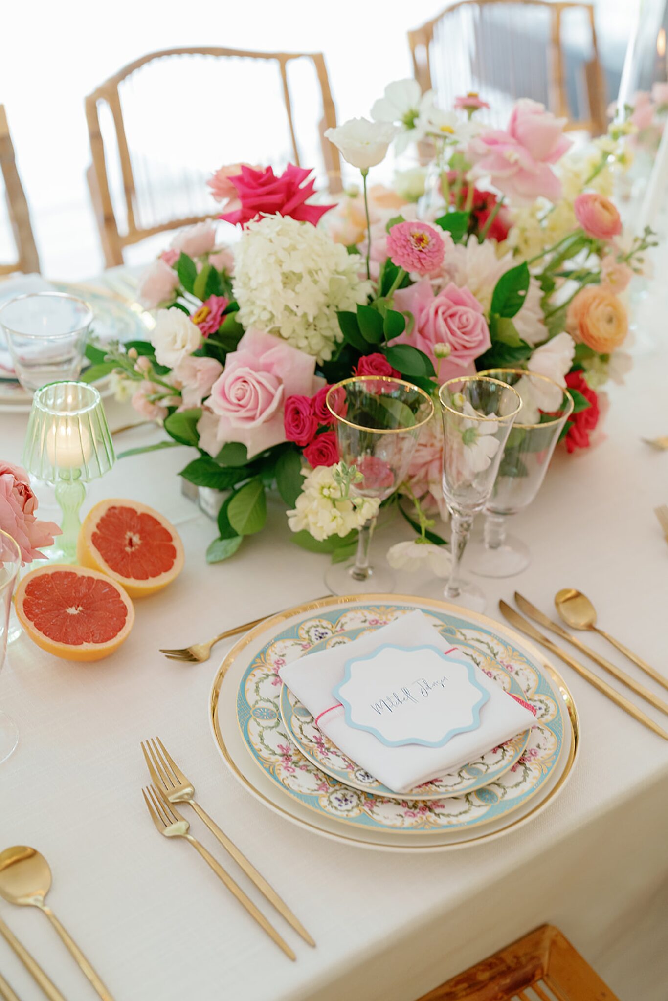 Planned and styled by Modern Day Collective, the day featured vibrant florals, layered textures, and an aesthetic that leaned into fashion-forward elegance. Grace stunned with hair and makeup by Reva, while Spencer’s family history was honored through a classic car that added a meaningful touch to their portraits.