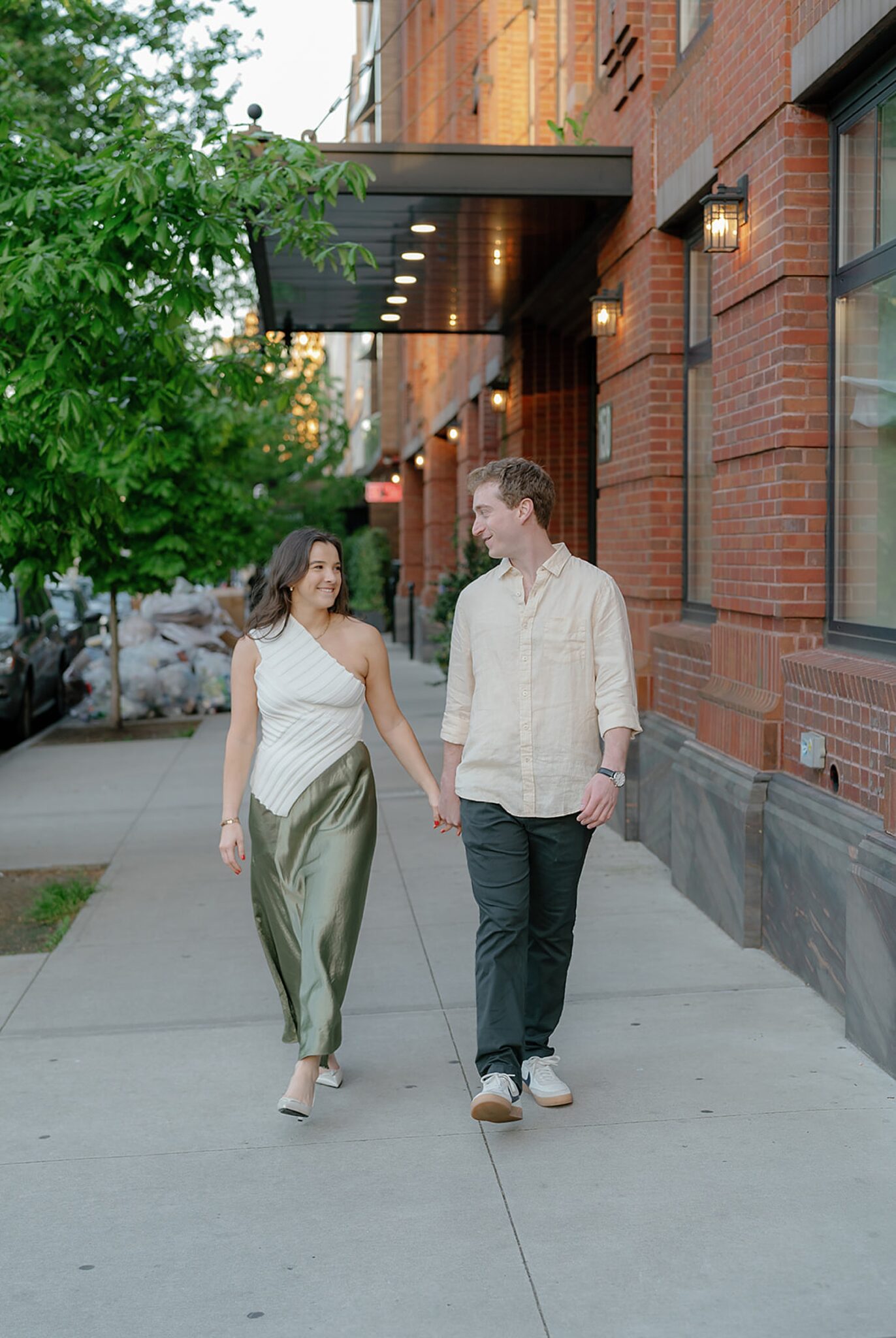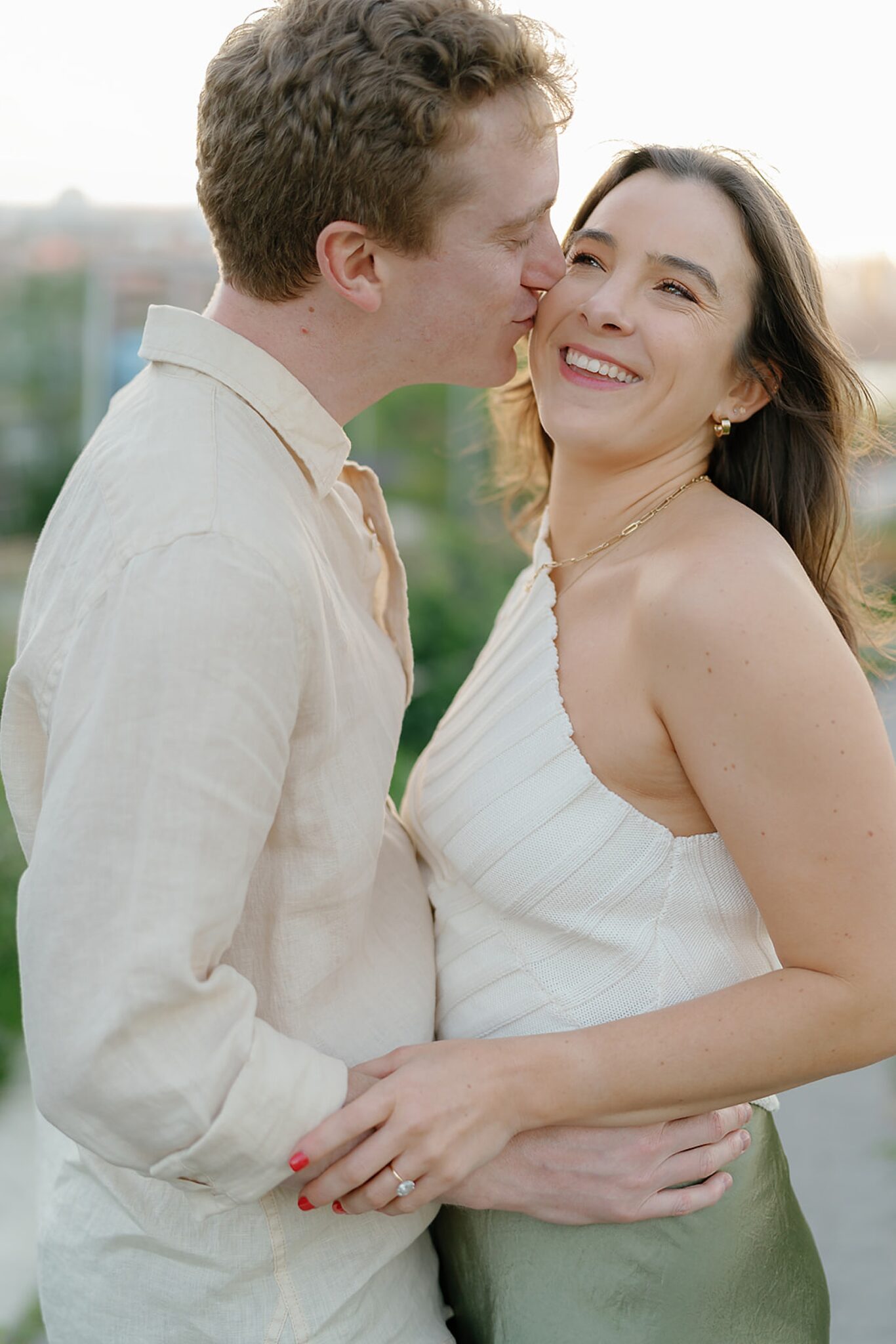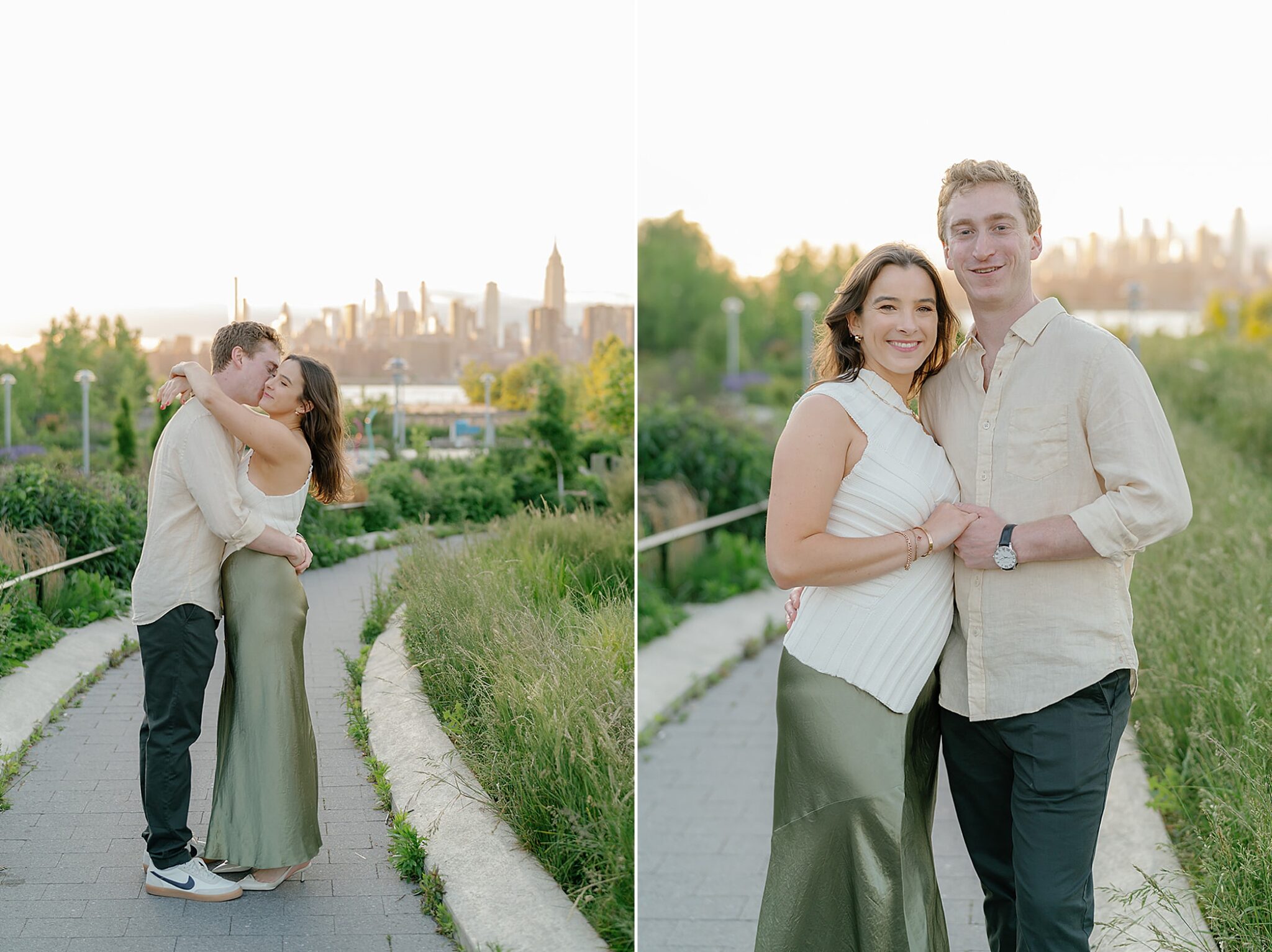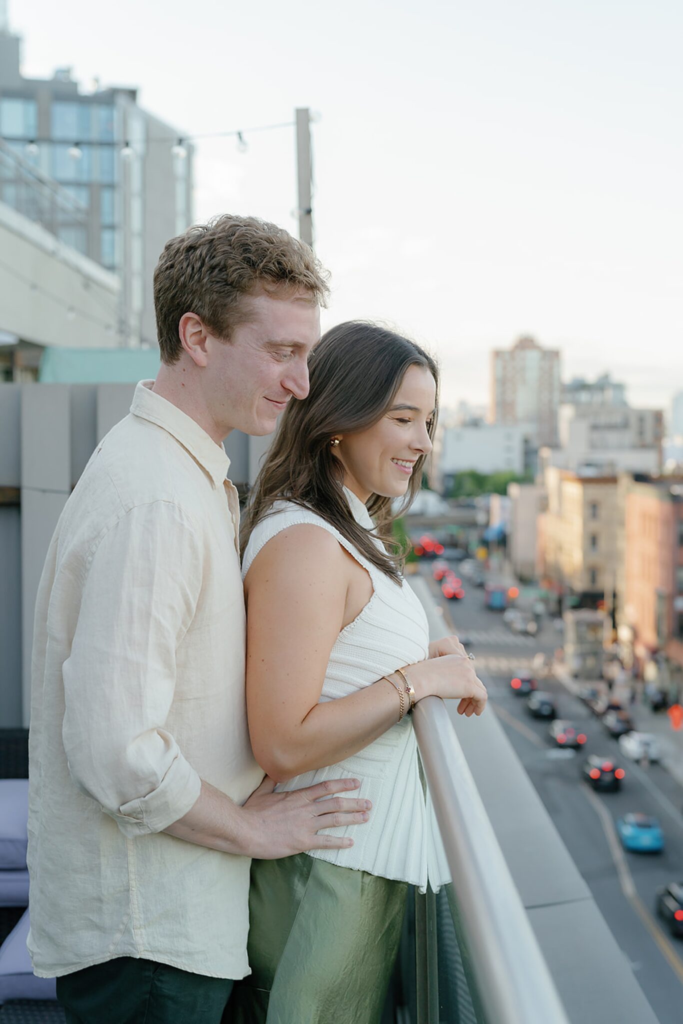 Before their Aspen wedding, Hannah and David chose Brooklyn for an engagement session that felt undeniably them. With the skyline stretched behind them and the hum of the city all around, we wandered through the streets at golden hour—capturing an elevated mix of New York edge and effortless romance.
