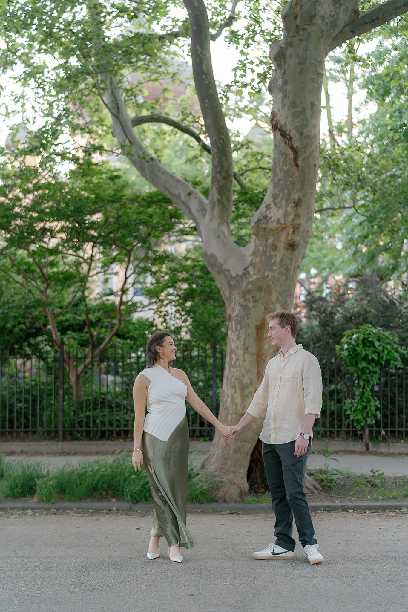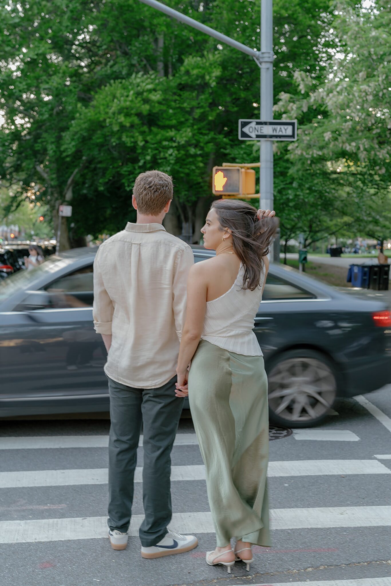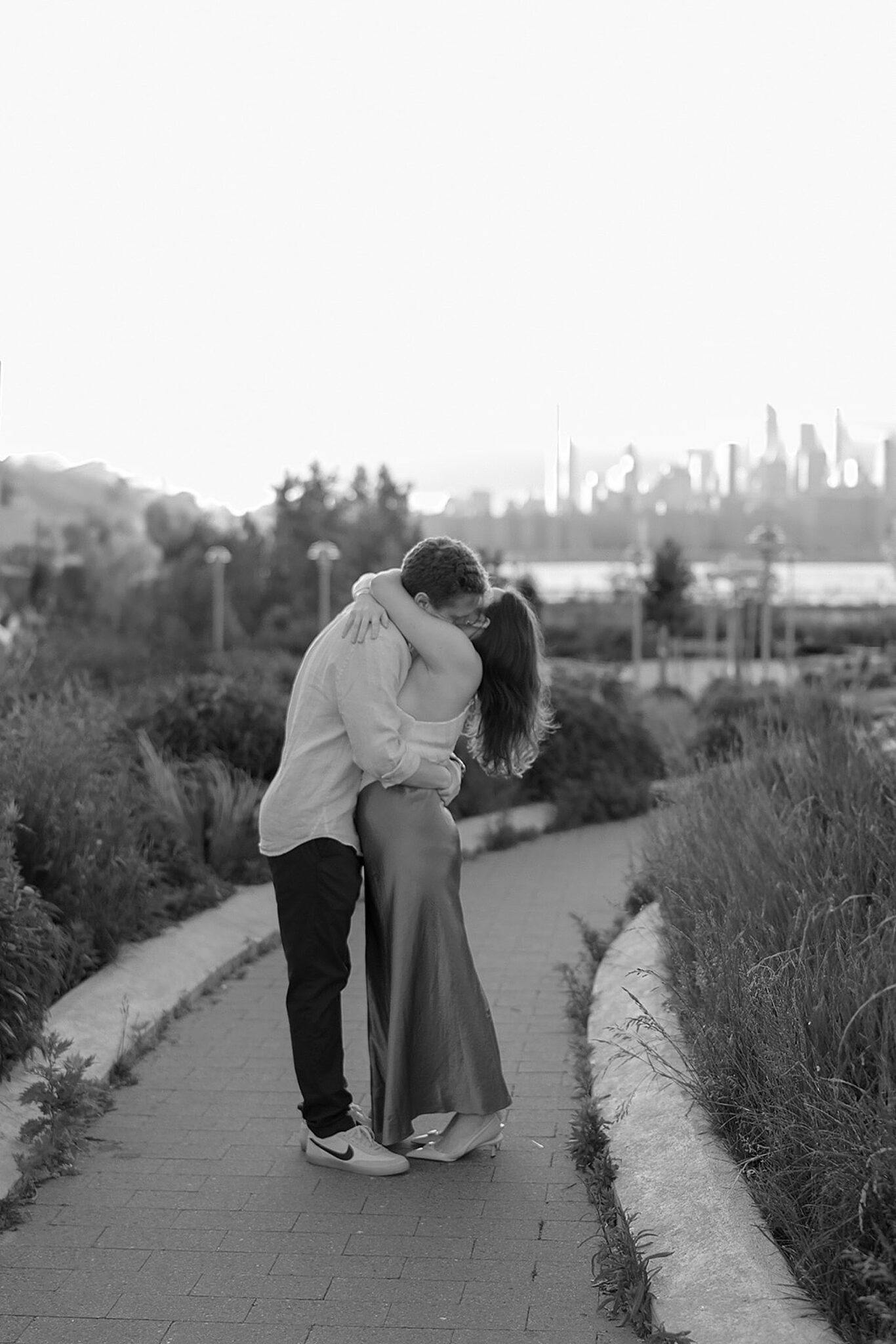 Before their Aspen wedding, Hannah and David chose Brooklyn for an engagement session that felt undeniably them. With the skyline stretched behind them and the hum of the city all around, we wandered through the streets at golden hour—capturing an elevated mix of New York edge and effortless romance.