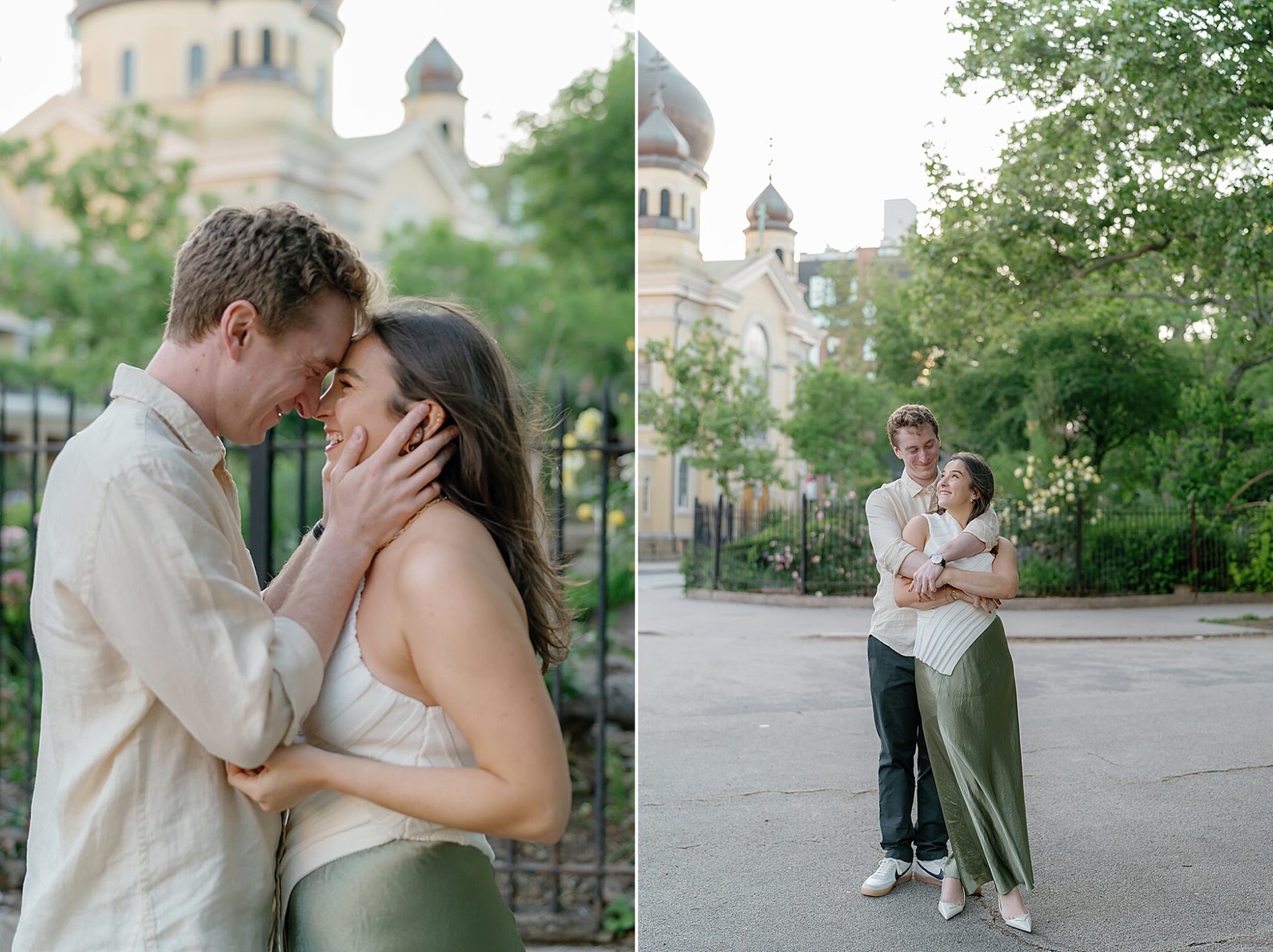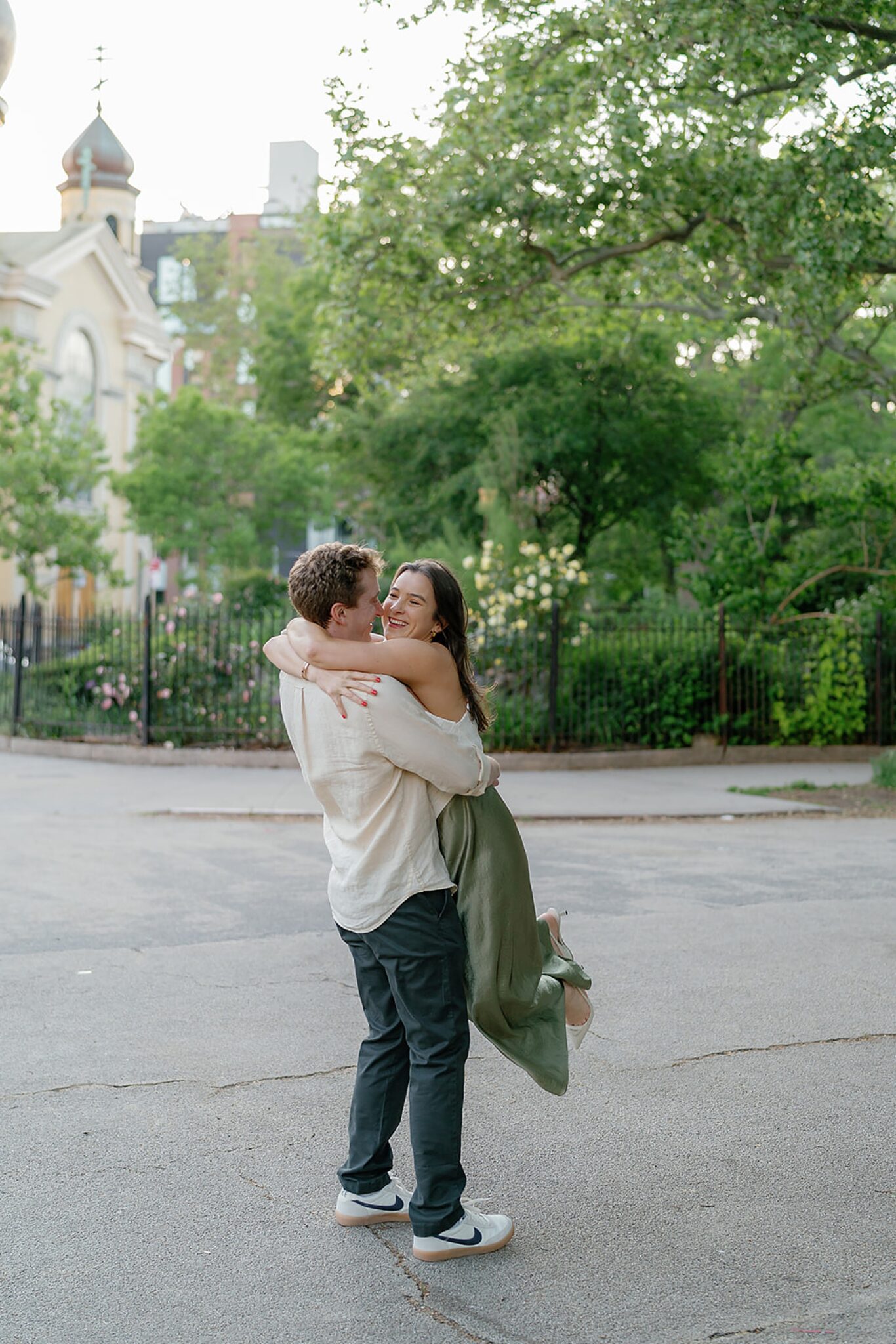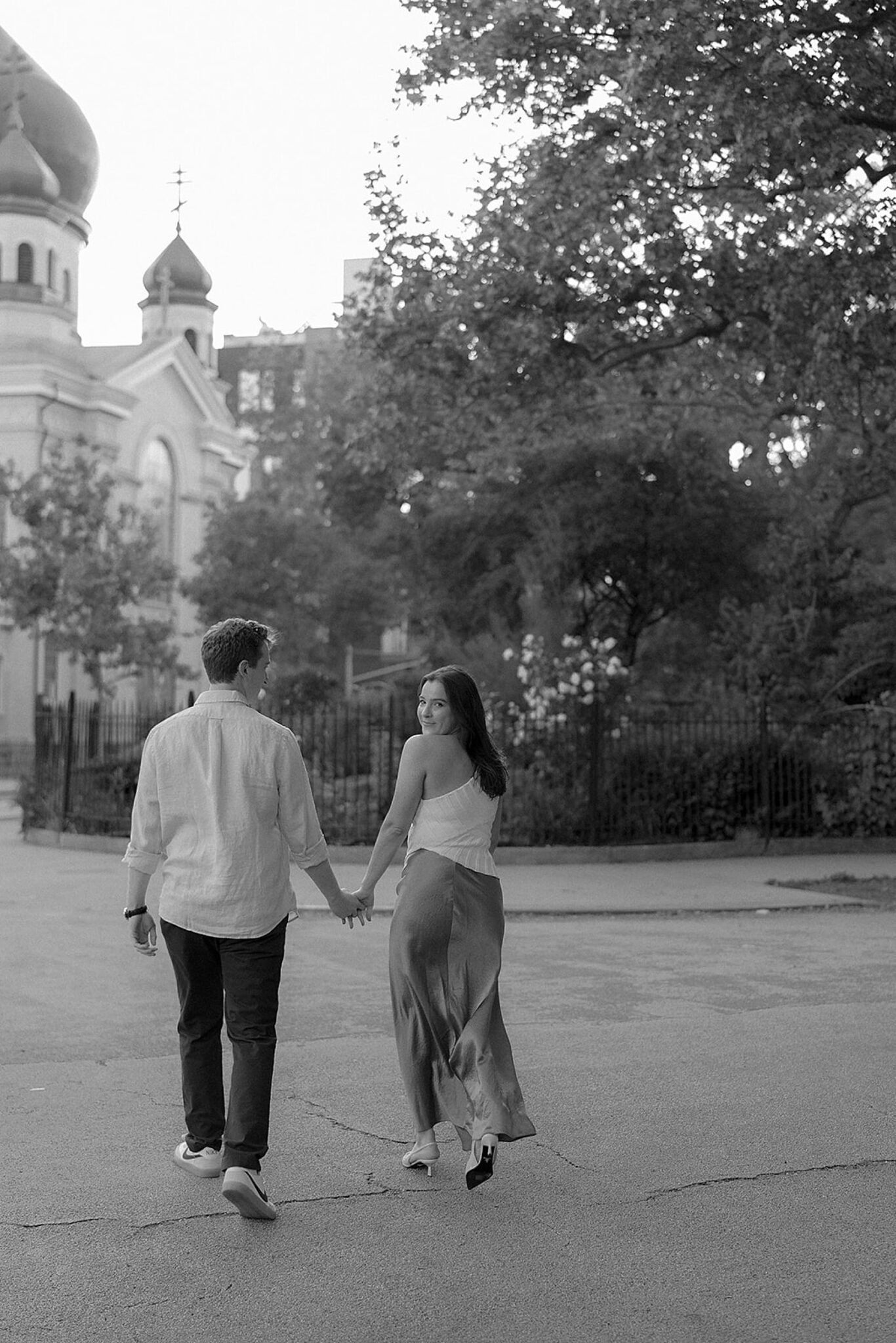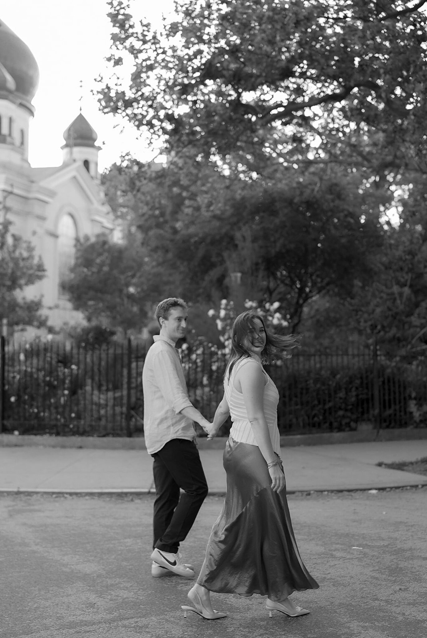 Before their Aspen wedding, Hannah and David chose Brooklyn for an engagement session that felt undeniably them. With the skyline stretched behind them and the hum of the city all around, we wandered through the streets at golden hour—capturing an elevated mix of New York edge and effortless romance.