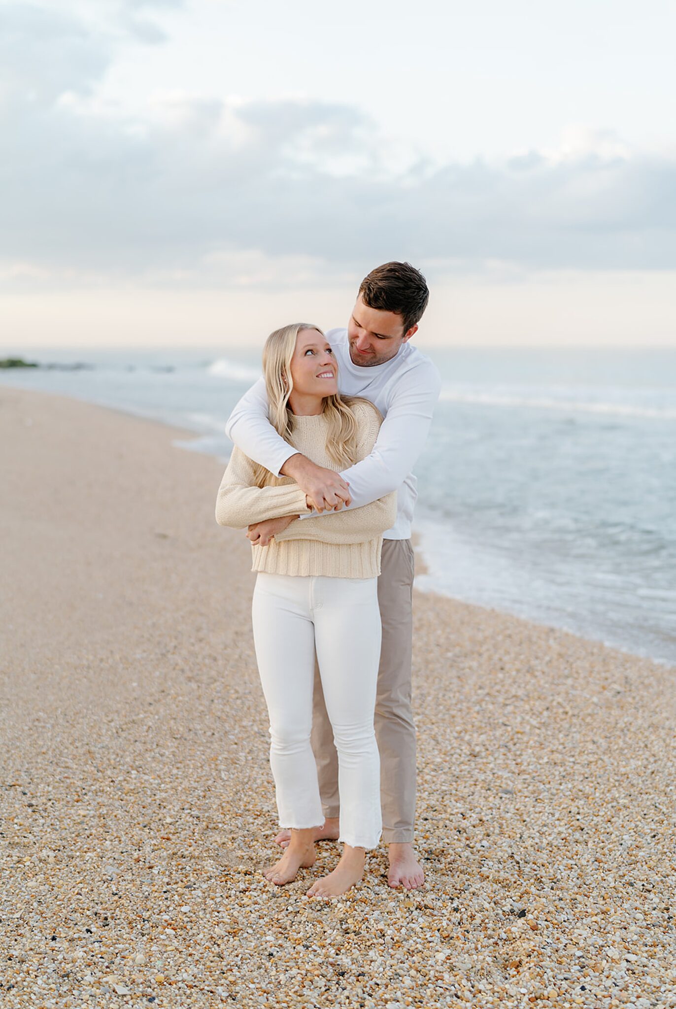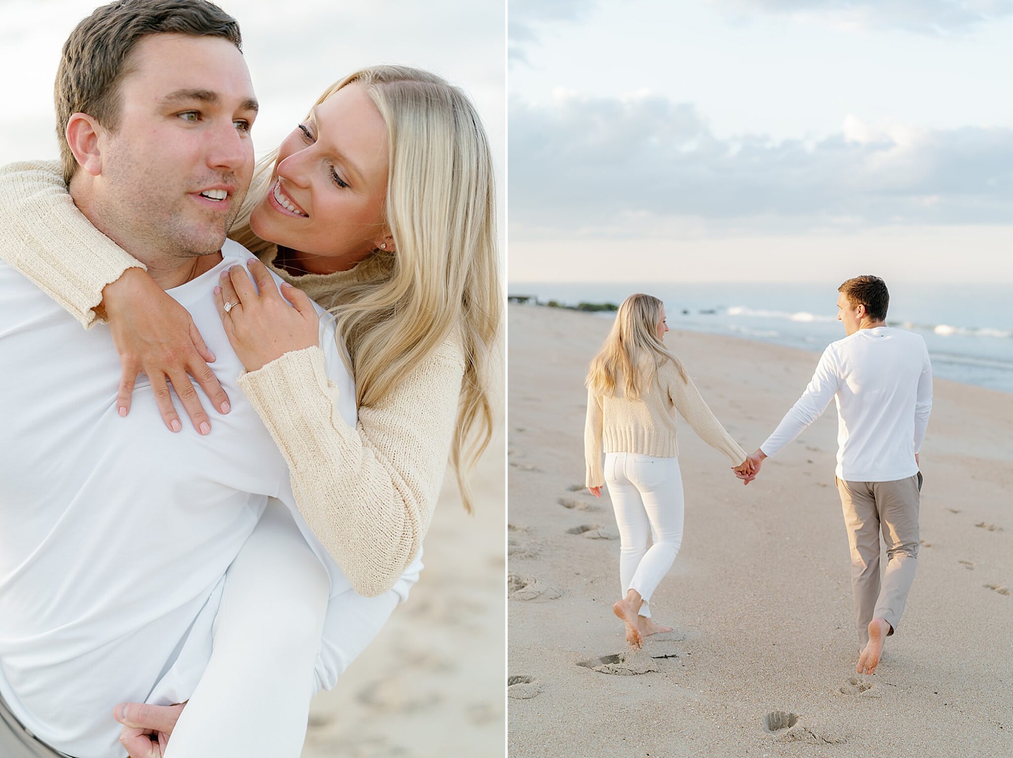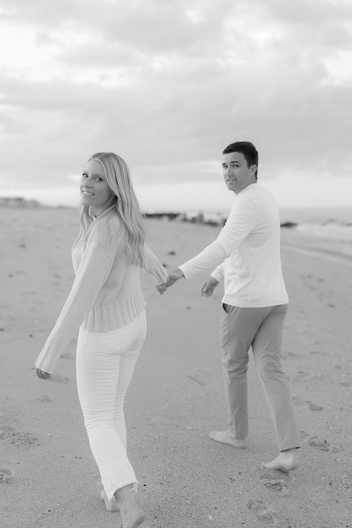 Kara and Ryan’s engagement session unfolded along the northern New Jersey coast, with Sea Bright’s shoreline as the backdrop. The atmosphere was coastal and understated—soft light, salt air, and the kind of easy movement that feels both elevated and natural.