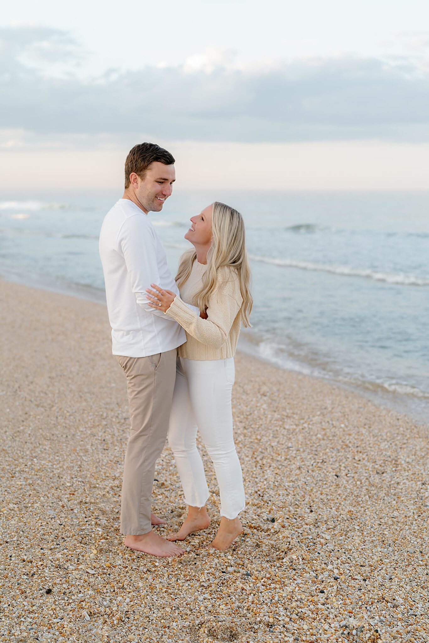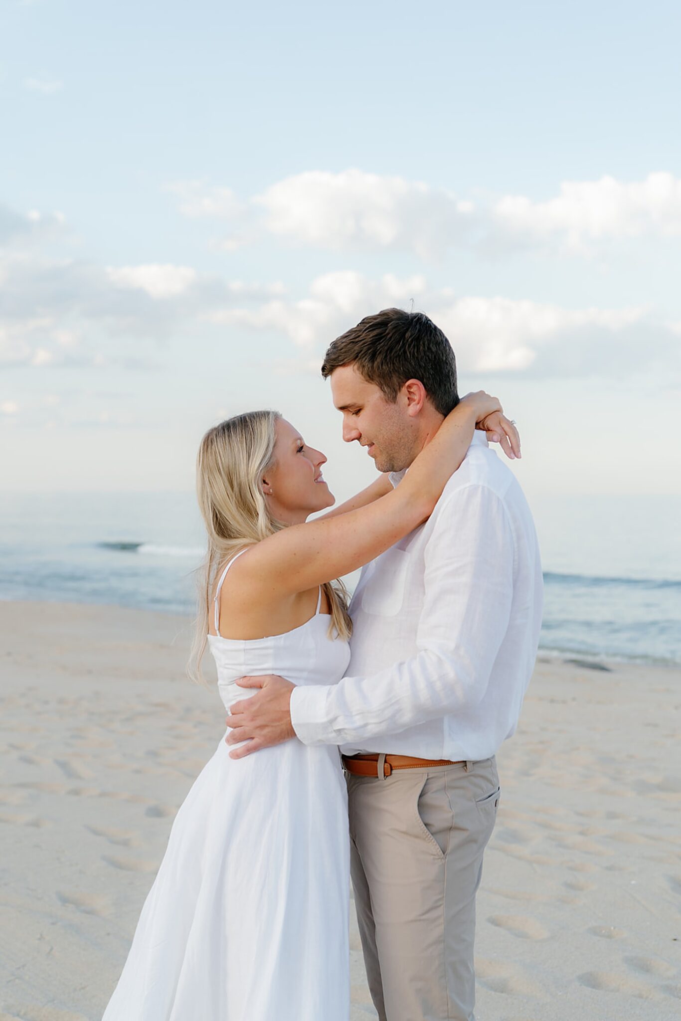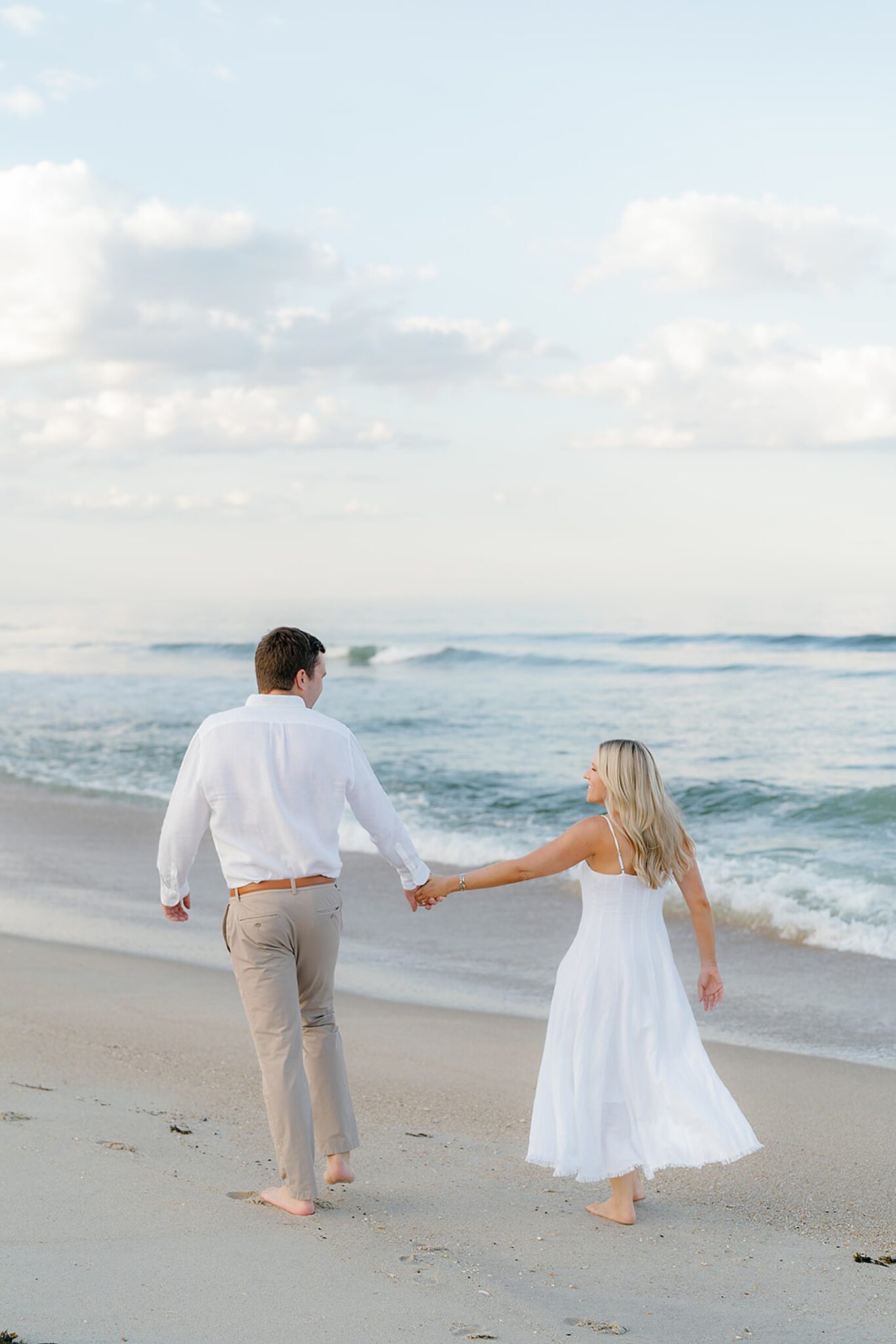Kara and Ryan’s engagement session unfolded along the northern New Jersey coast, with Sea Bright’s shoreline as the backdrop. The atmosphere was coastal and understated—soft light, salt air, and the kind of easy movement that feels both elevated and natural.