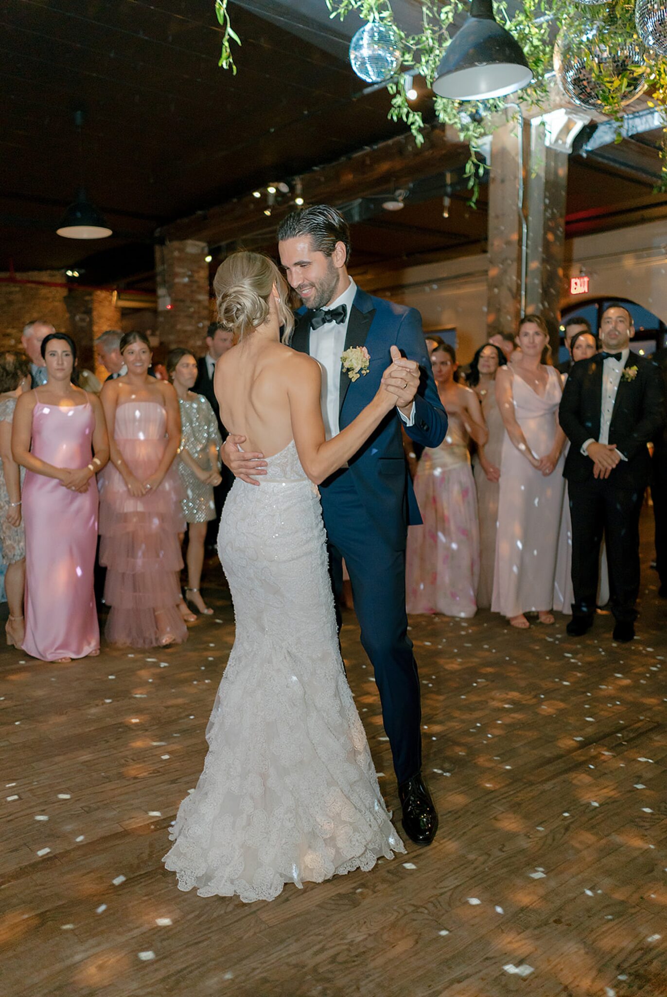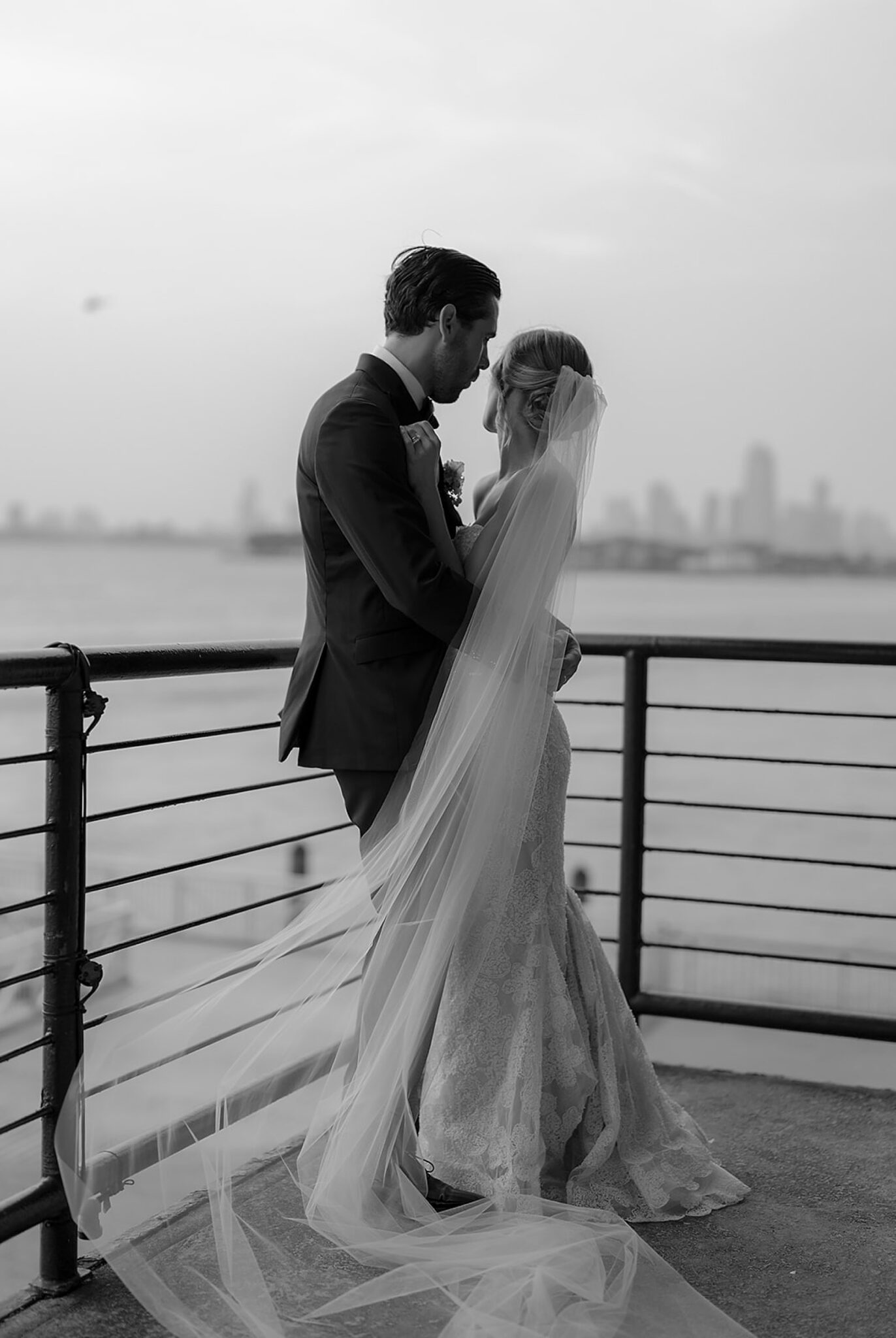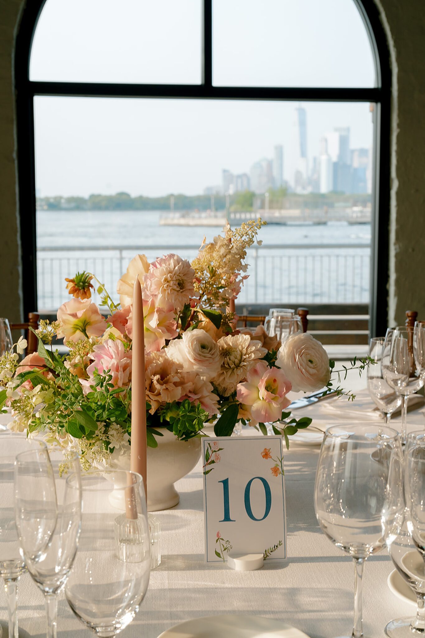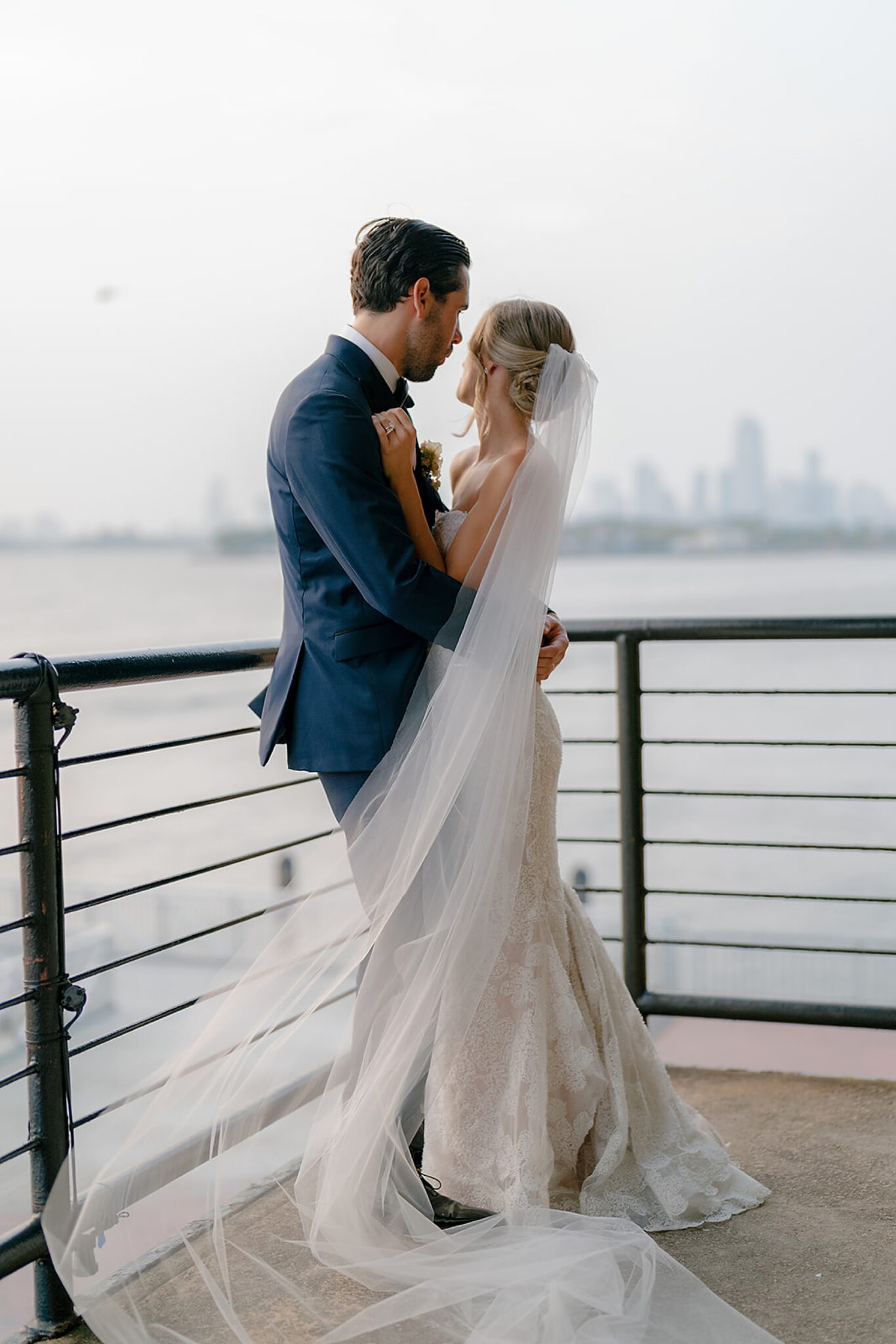 Kelsey and Rich’s wedding at Liberty Warehouse was the definition of New York chic—industrial lines softened by the glow of the harbor, the skyline unfolding just beyond the water. Every detail carried a sense of refined style, balanced with an ease that felt true to them.