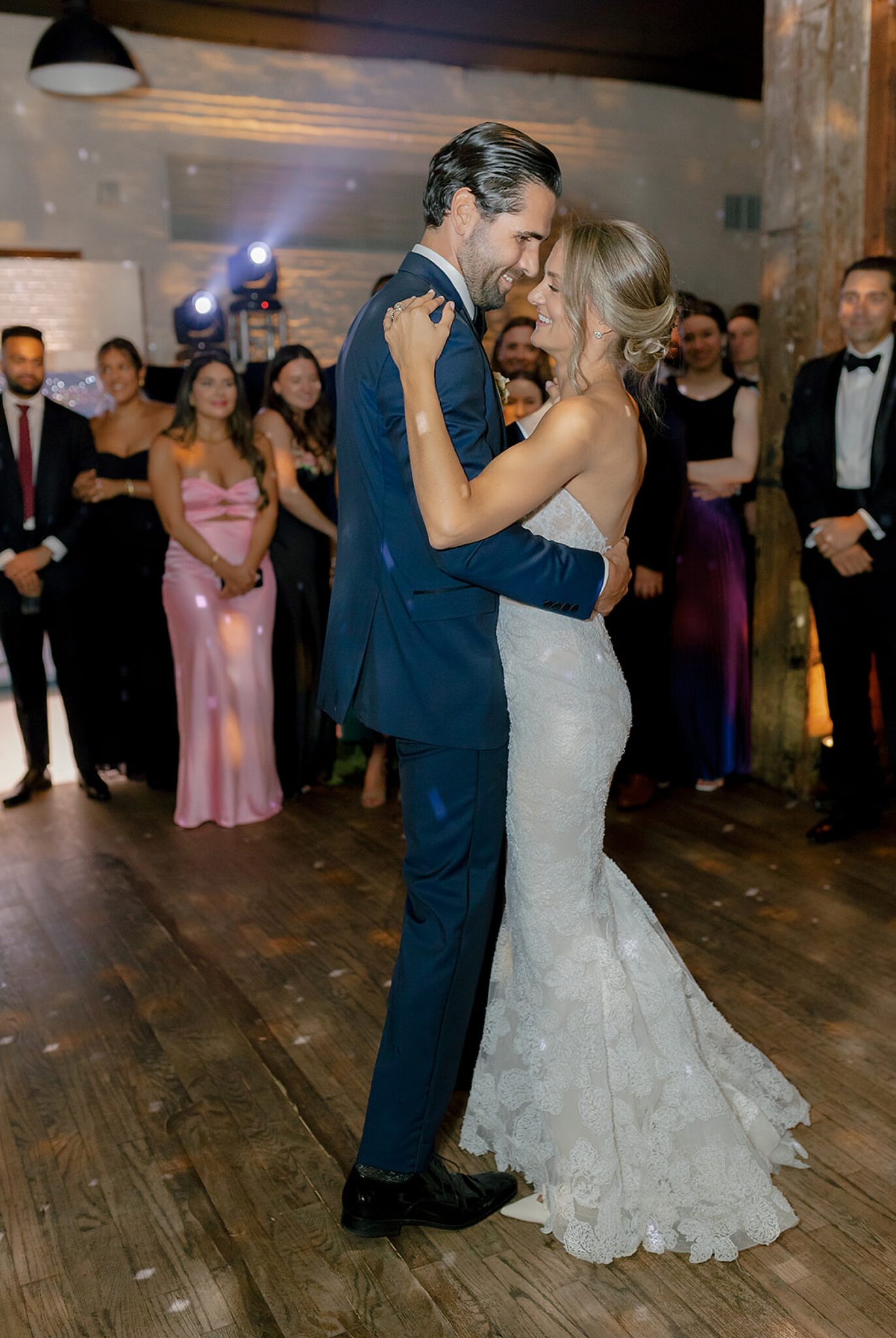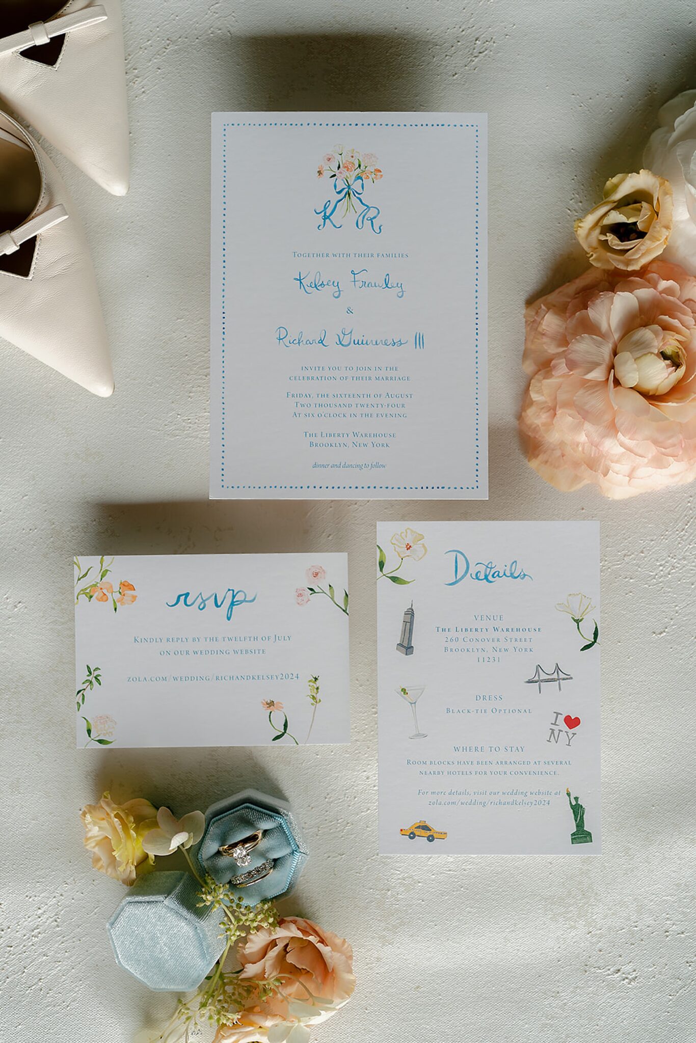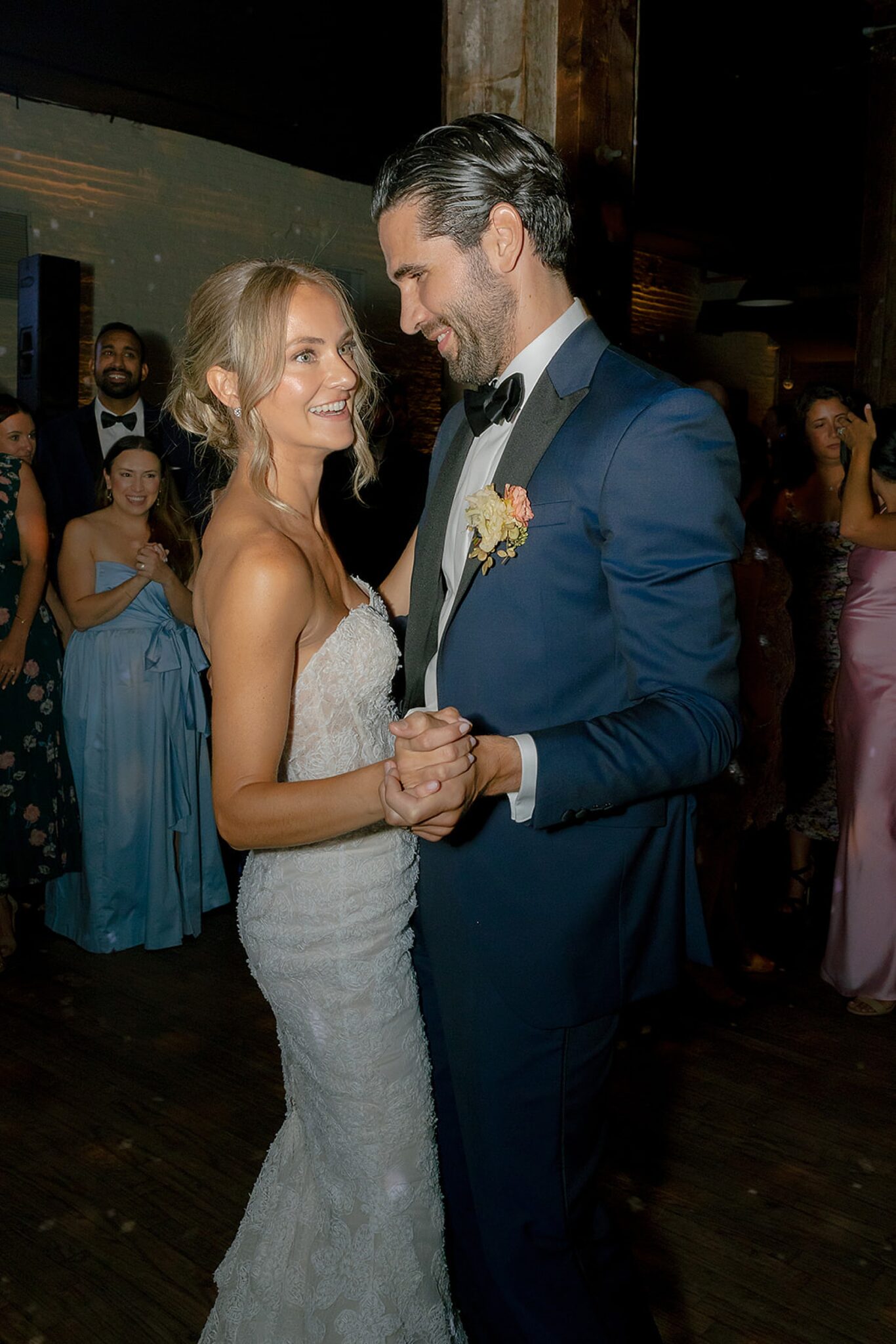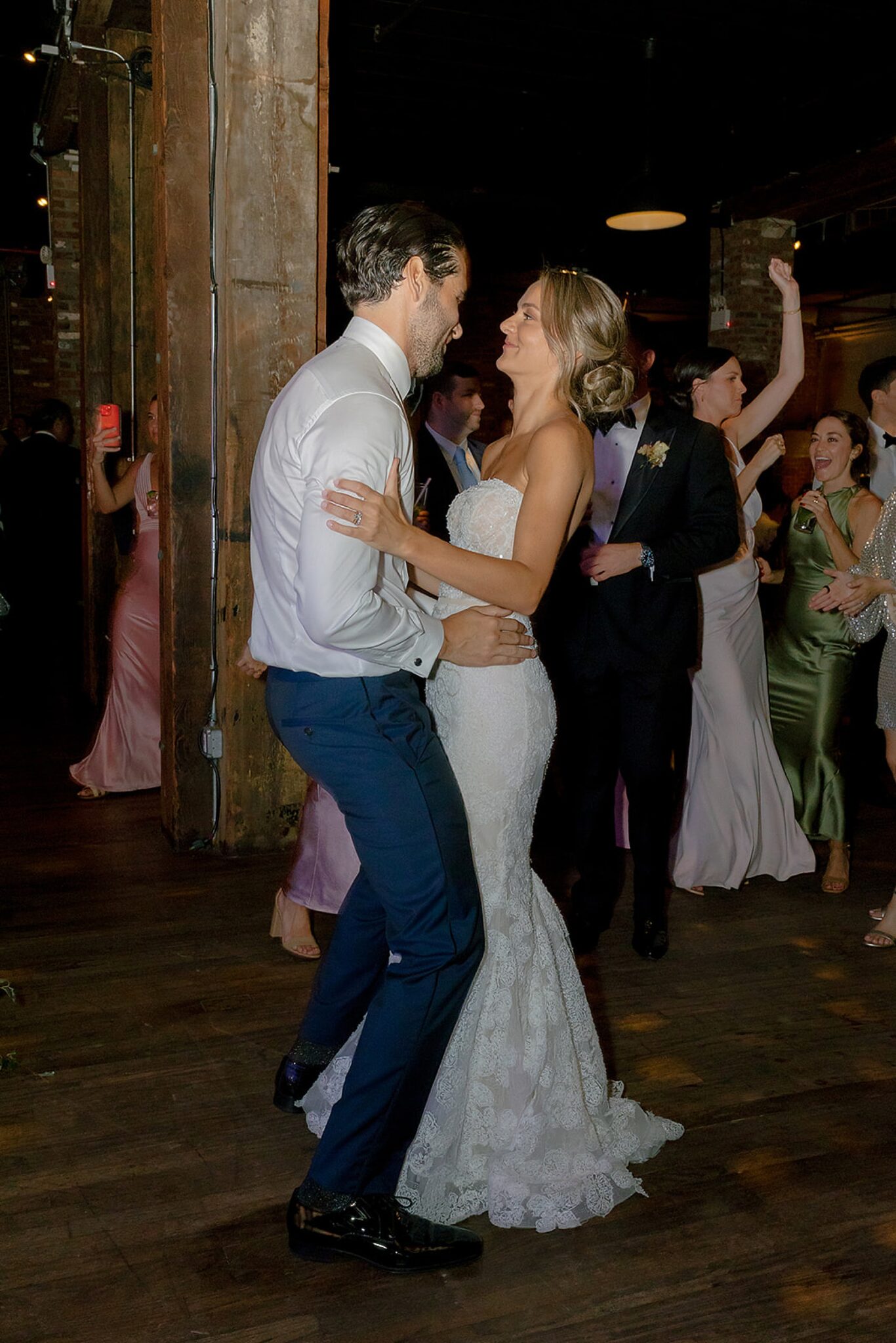 Kelsey and Rich’s wedding at Liberty Warehouse was the definition of New York chic—industrial lines softened by the glow of the harbor, the skyline unfolding just beyond the water. Every detail carried a sense of refined style, balanced with an ease that felt true to them.
