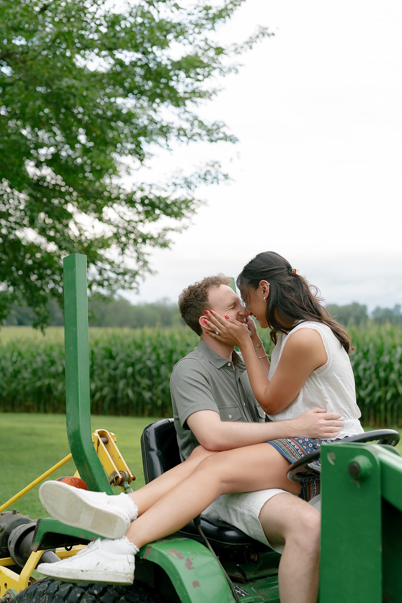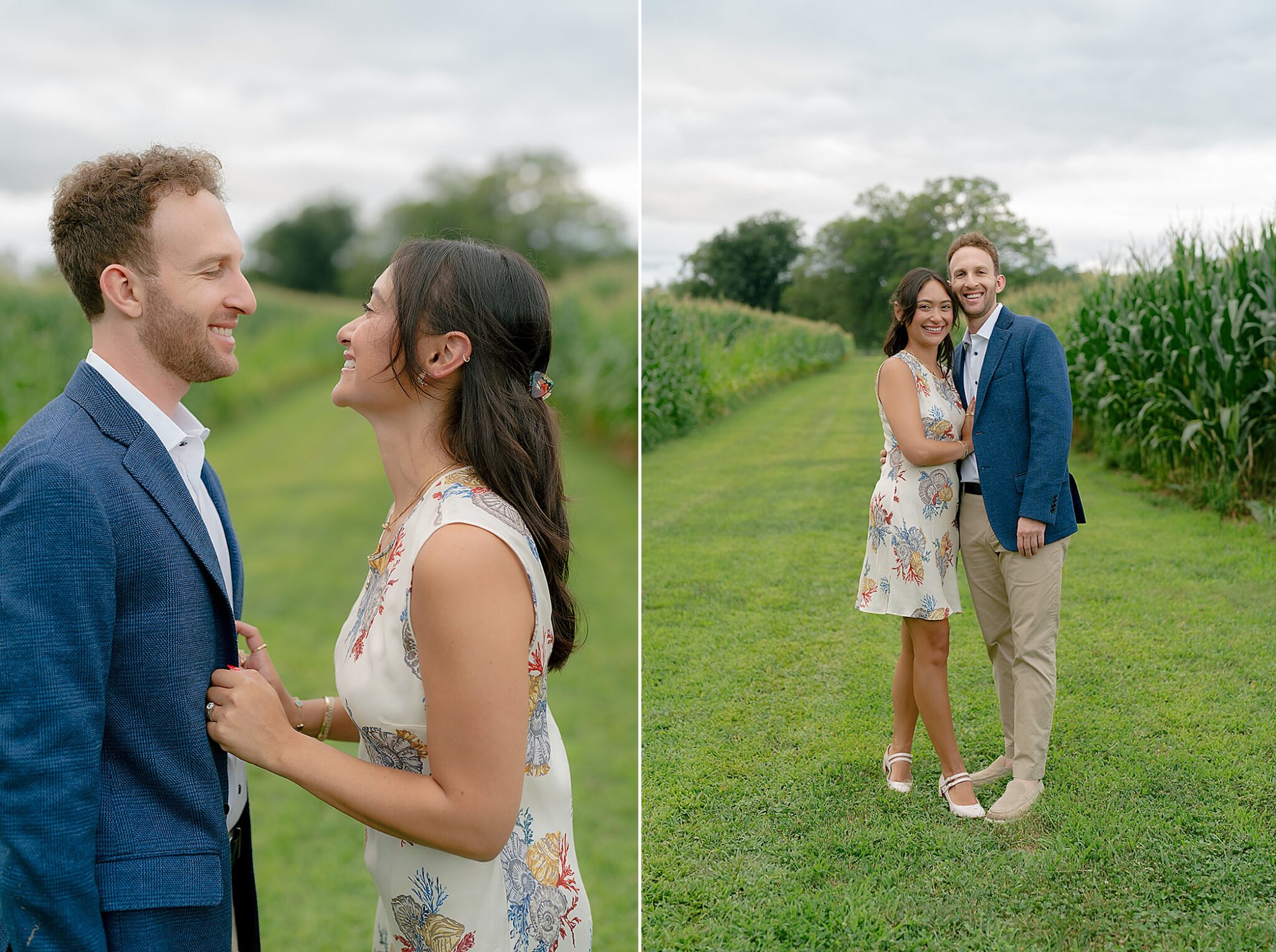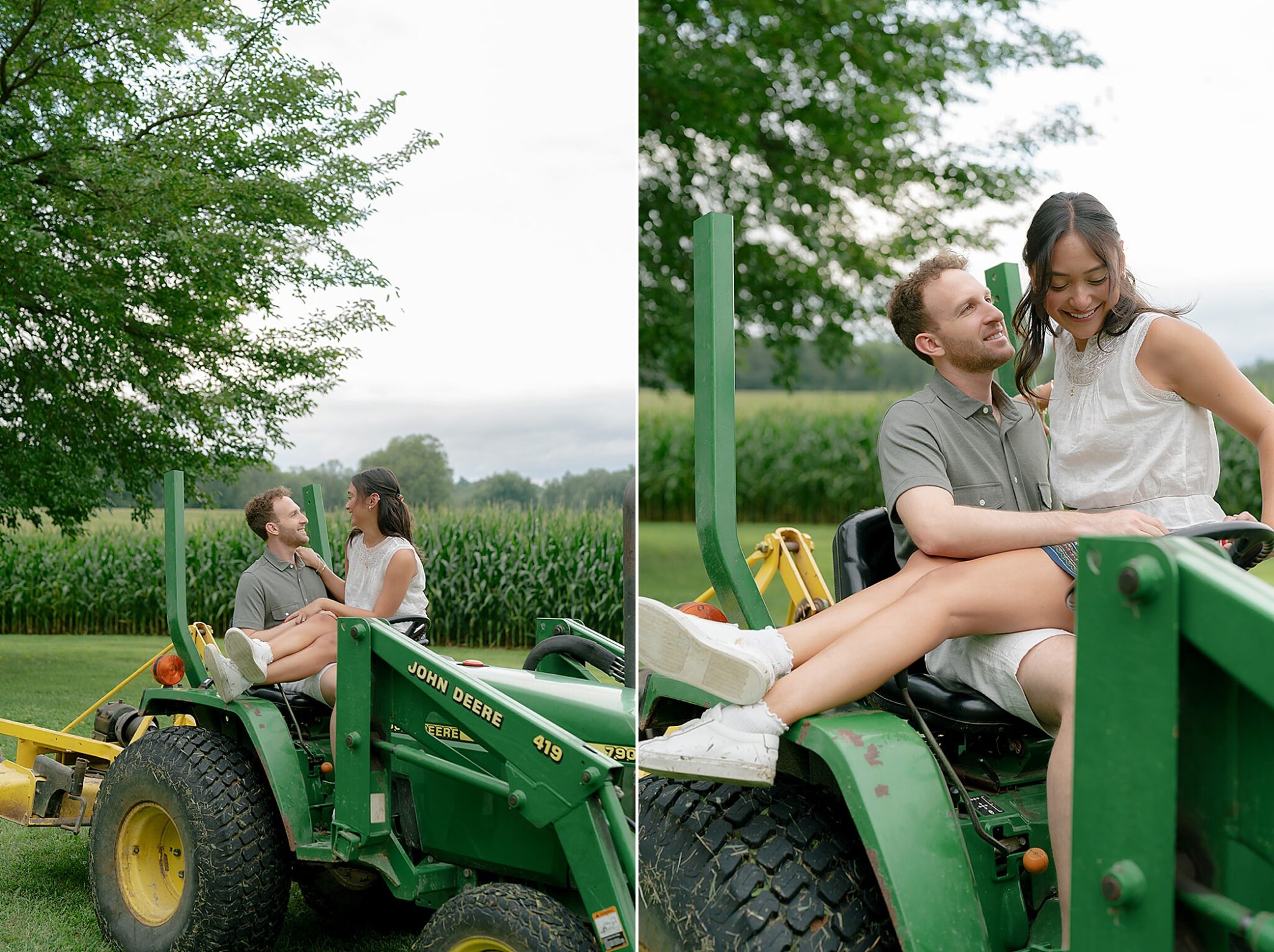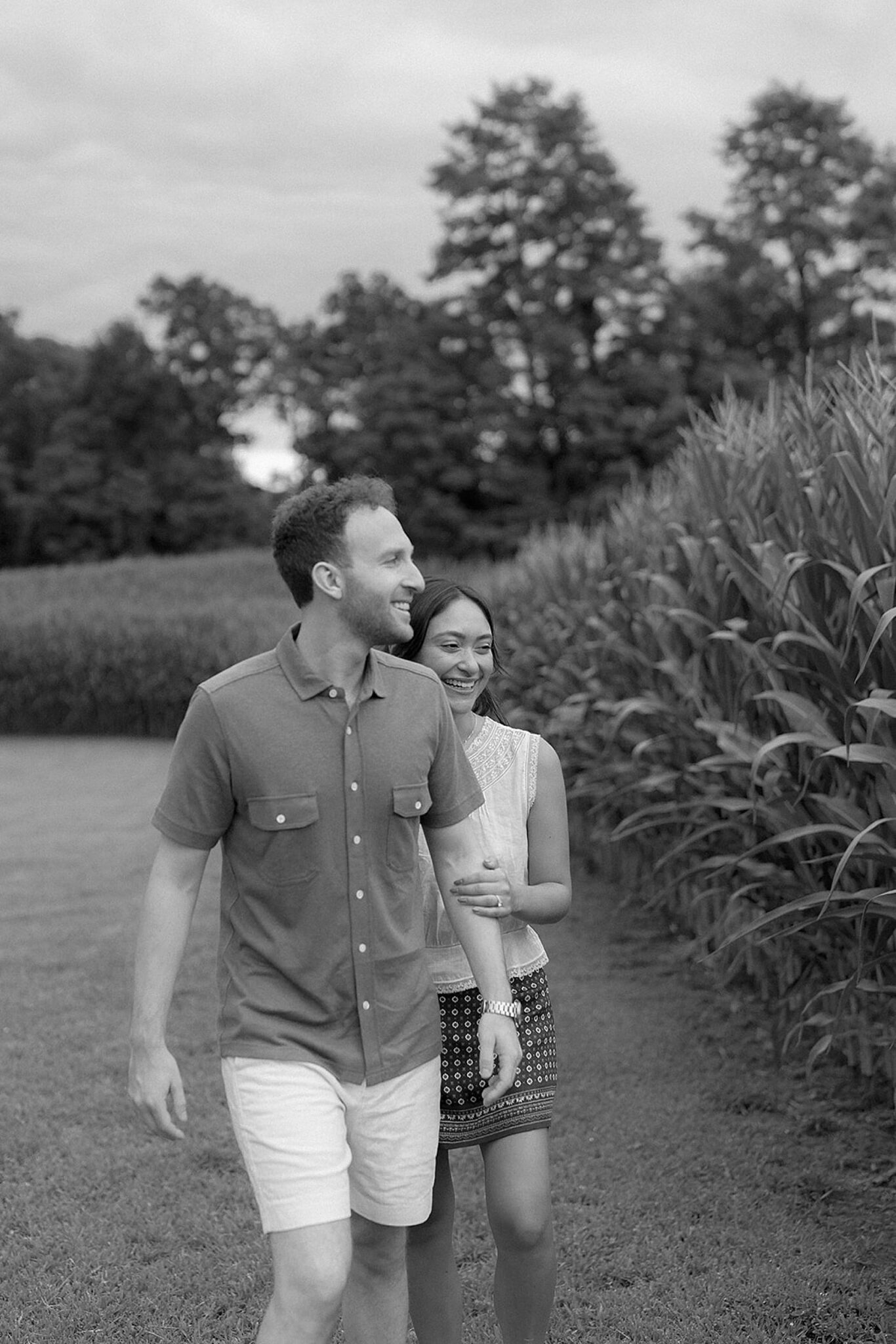 Maxine and Elliot’s engagement session unfolded on their family farm in Kingston, New York—a place layered with history, charm, and quiet romance. Amongst golden corn fields and weathered tractors, there was an ease to the way they moved together, rooted in the landscape that shaped them.