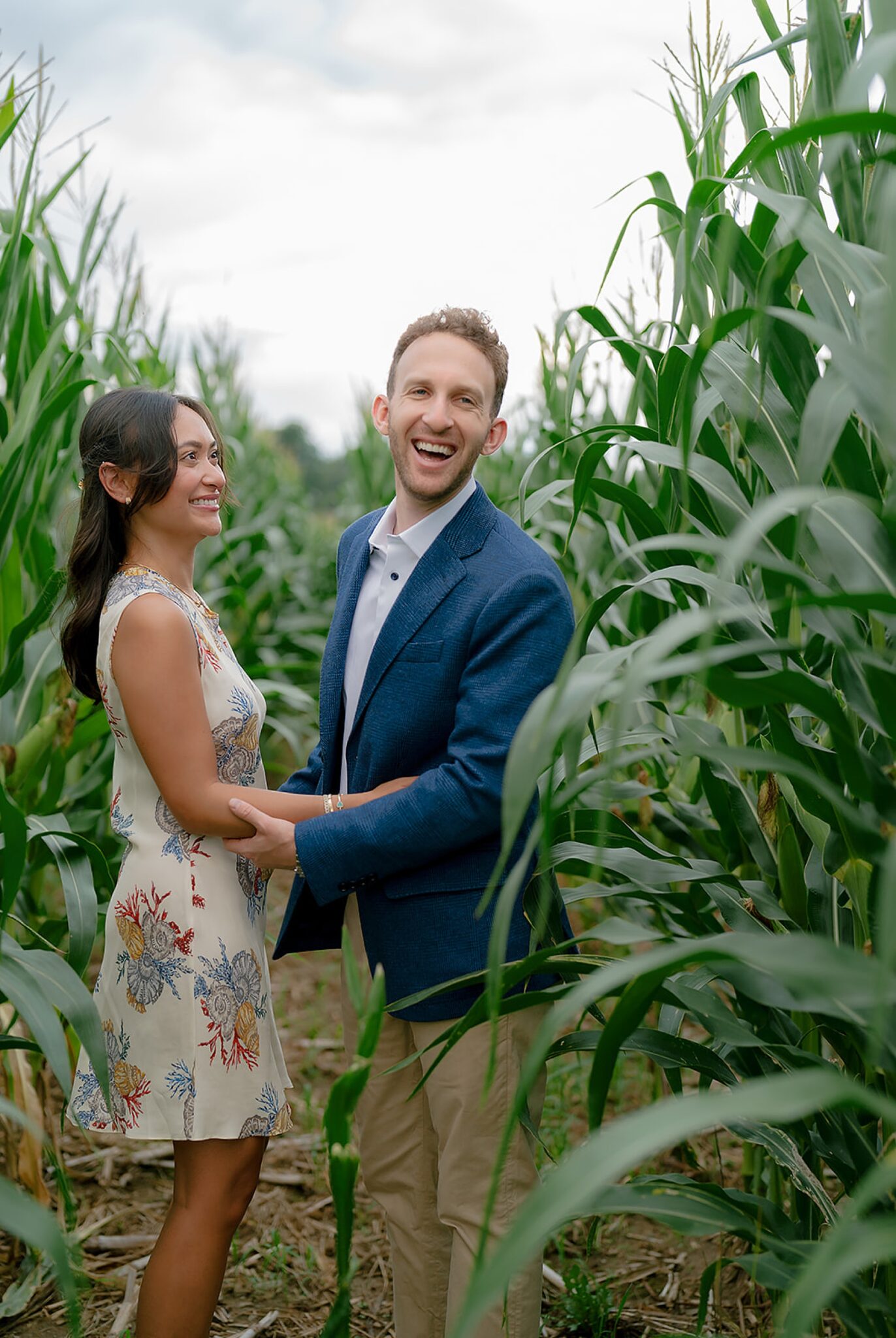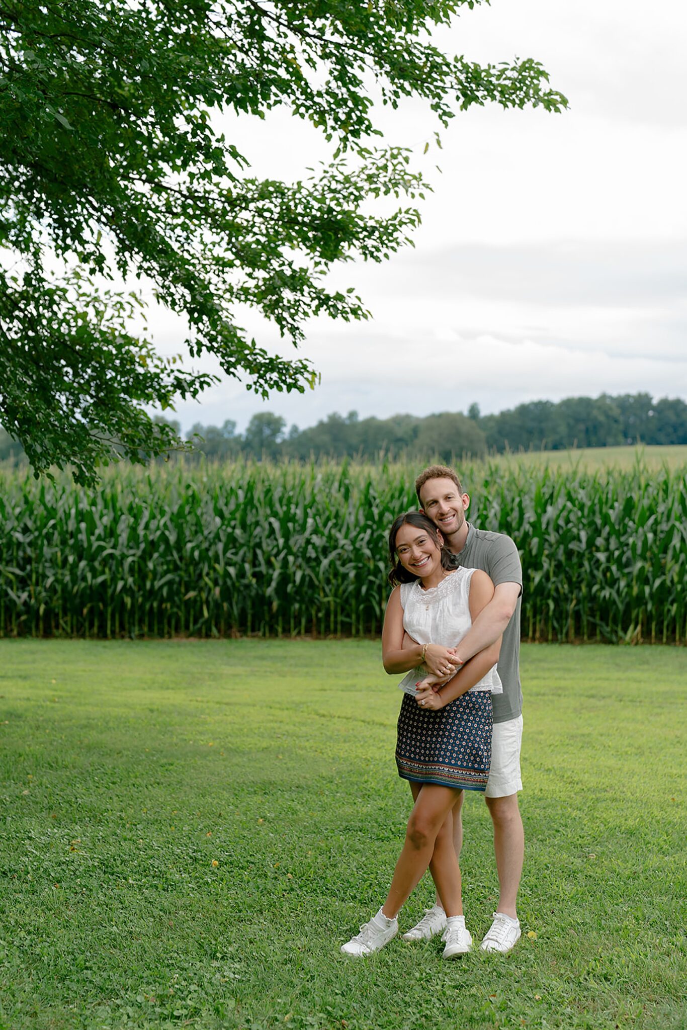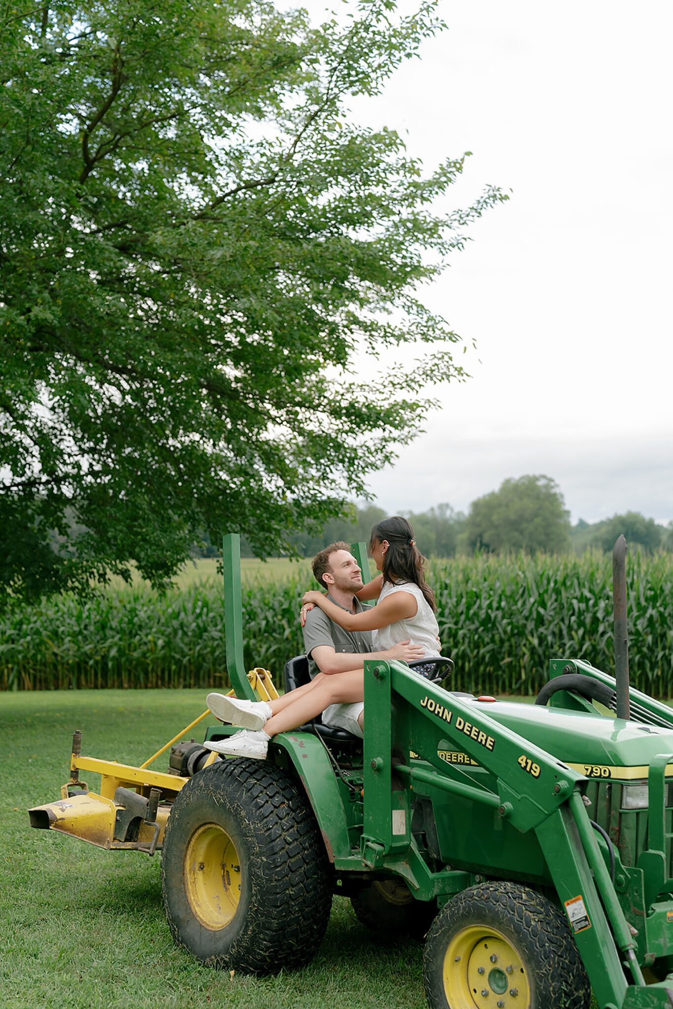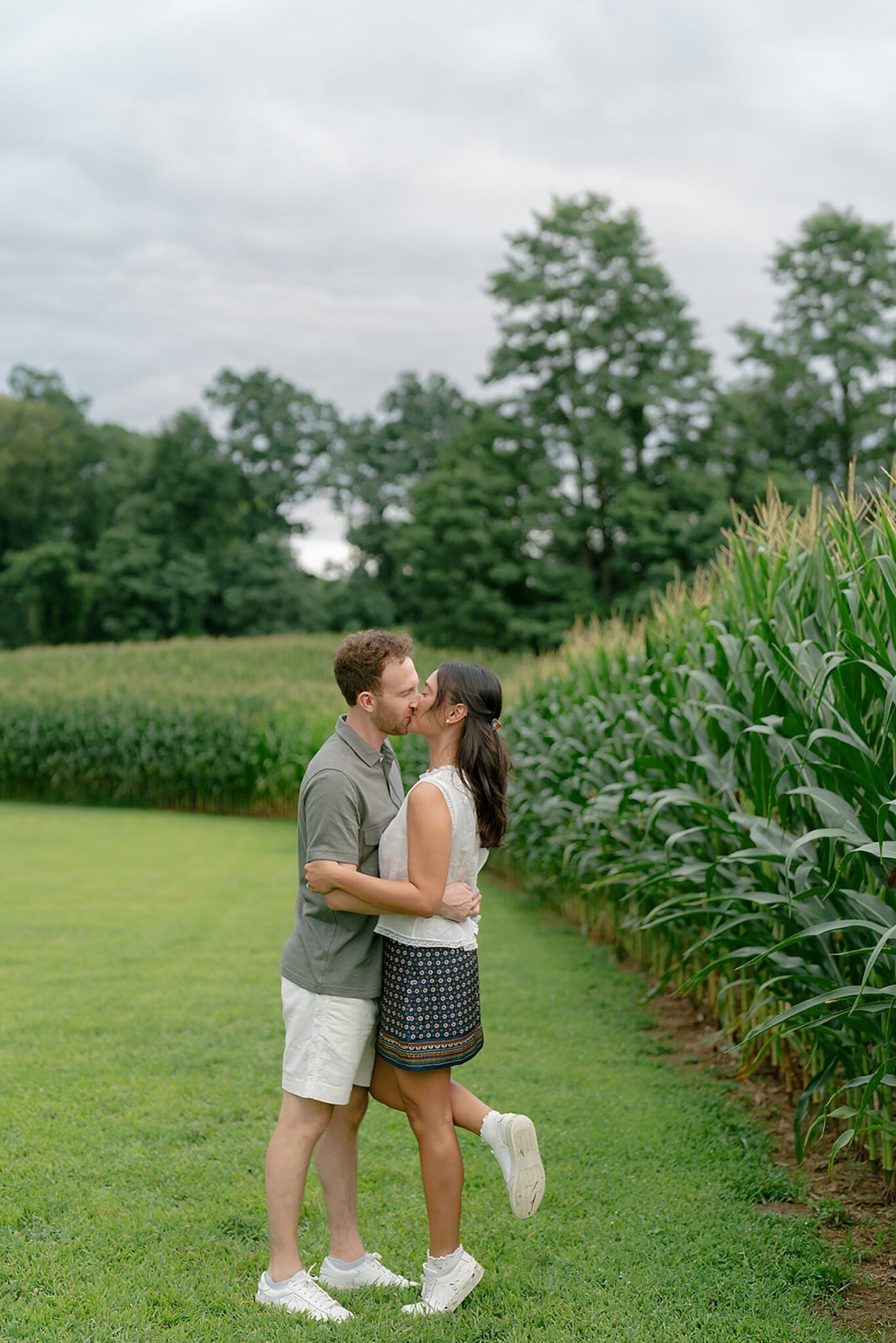 Maxine and Elliot’s engagement session unfolded on their family farm in Kingston, New York—a place layered with history, charm, and quiet romance. Amongst golden corn fields and weathered tractors, there was an ease to the way they moved together, rooted in the landscape that shaped them.