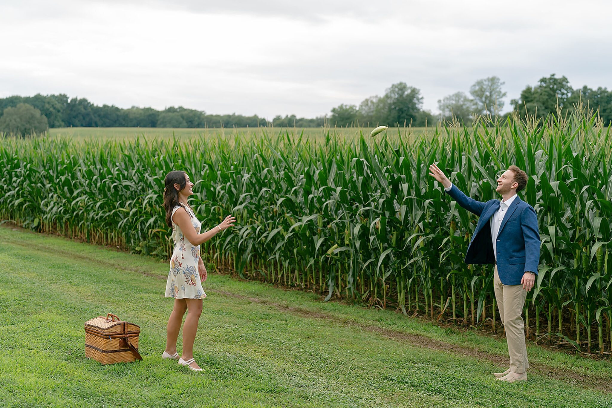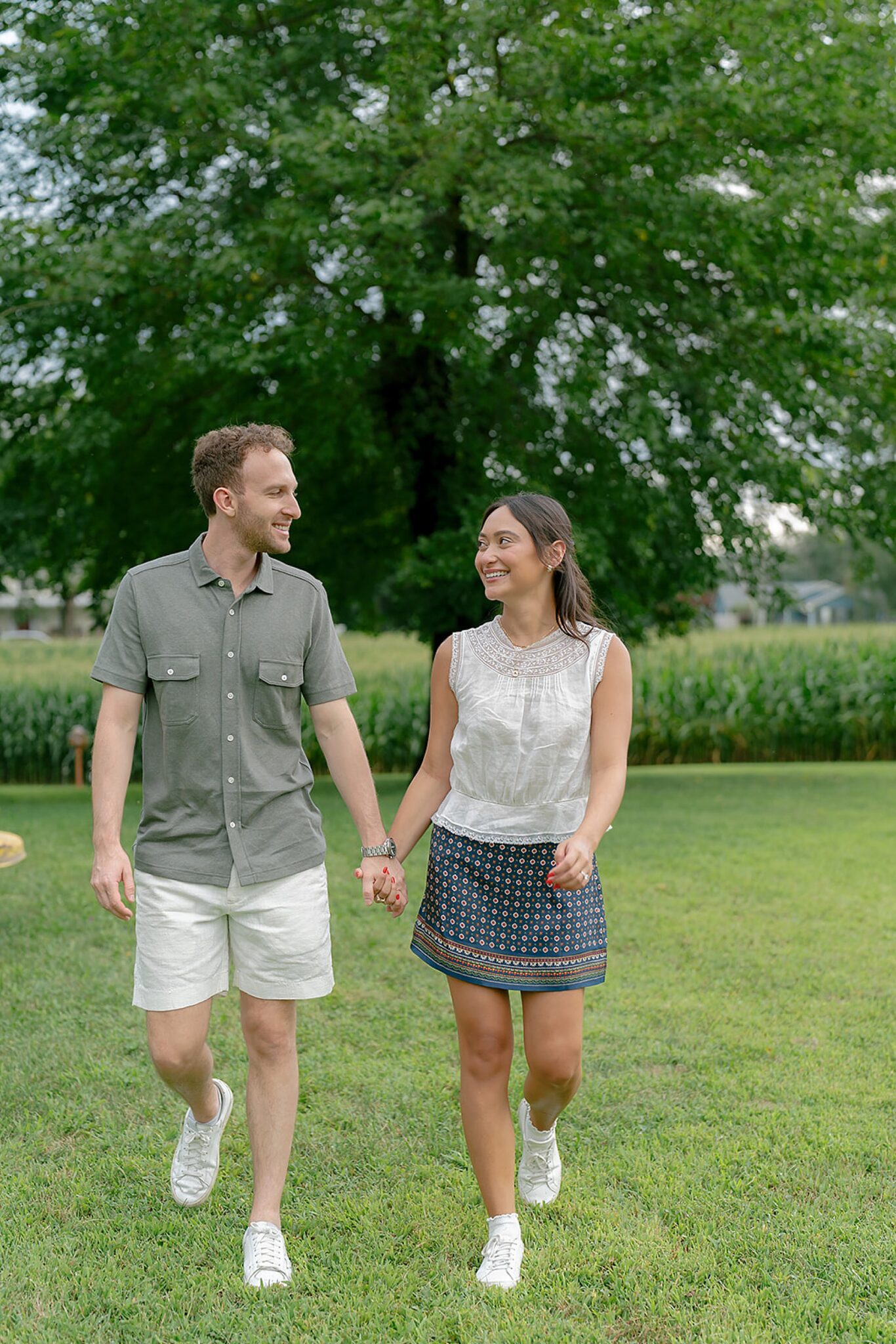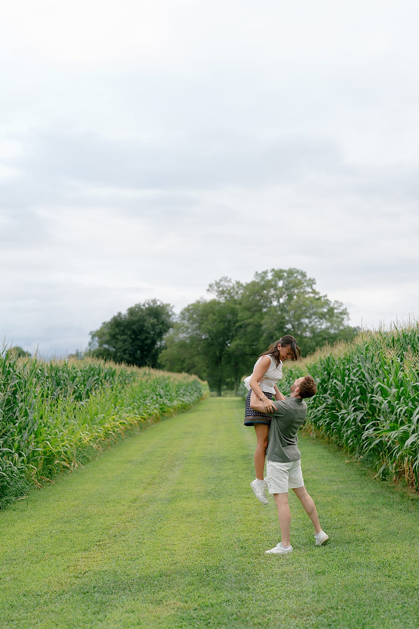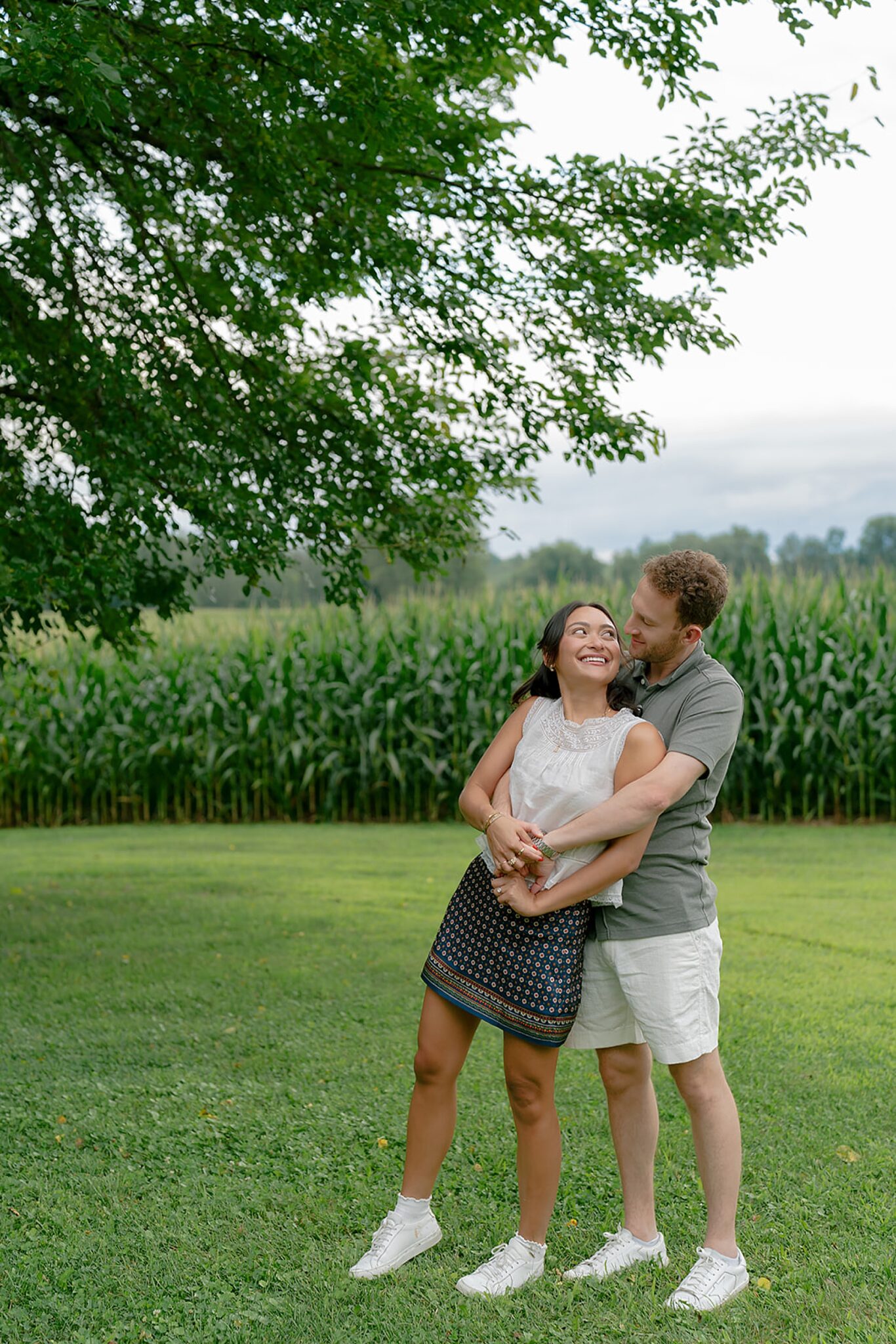 Maxine and Elliot’s engagement session unfolded on their family farm in Kingston, New York—a place layered with history, charm, and quiet romance. Amongst golden corn fields and weathered tractors, there was an ease to the way they moved together, rooted in the landscape that shaped them.