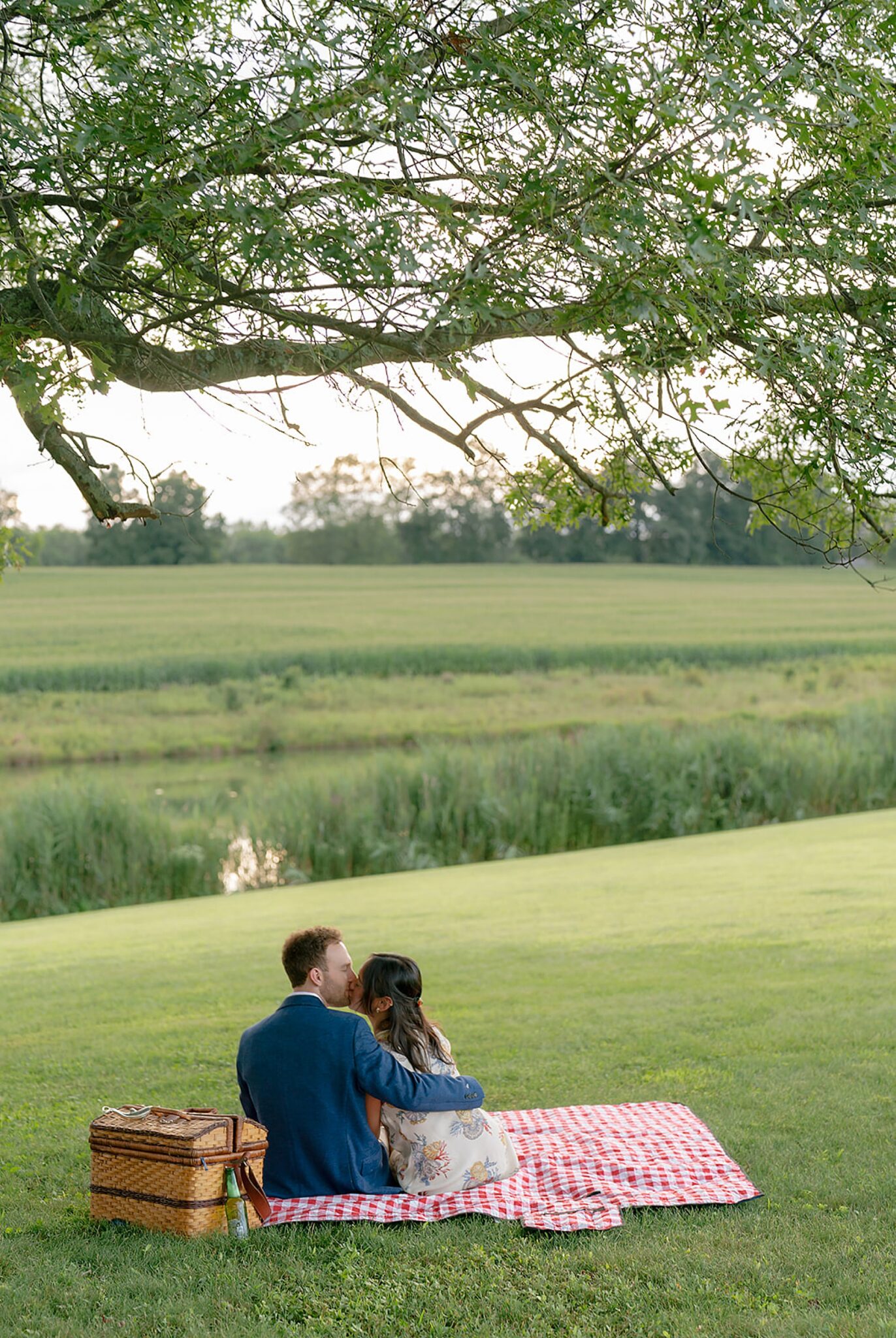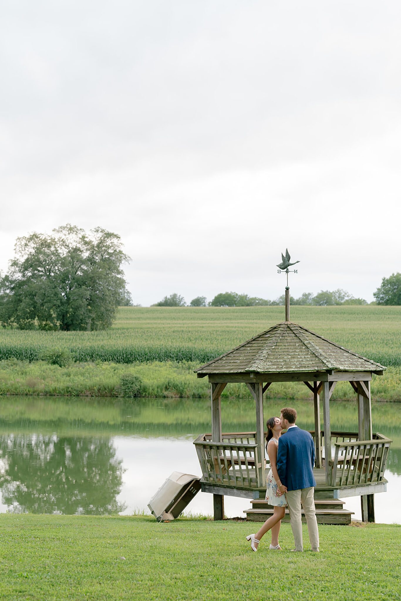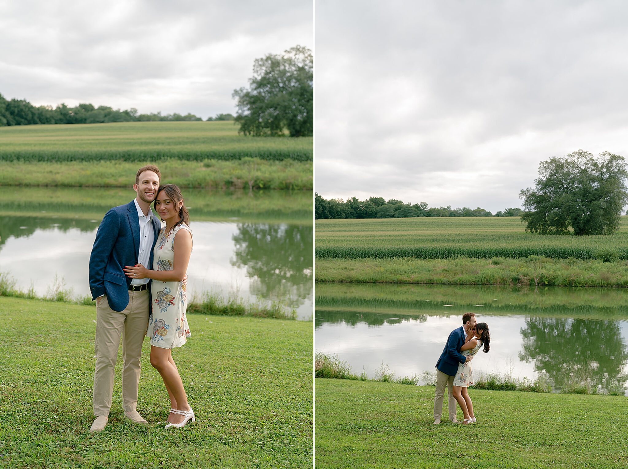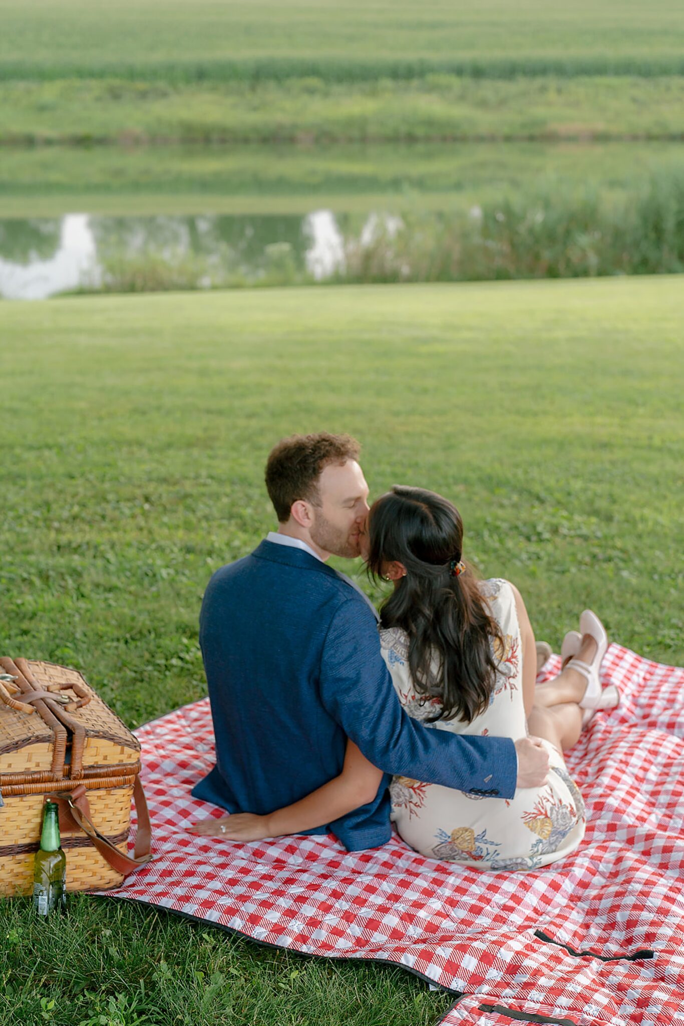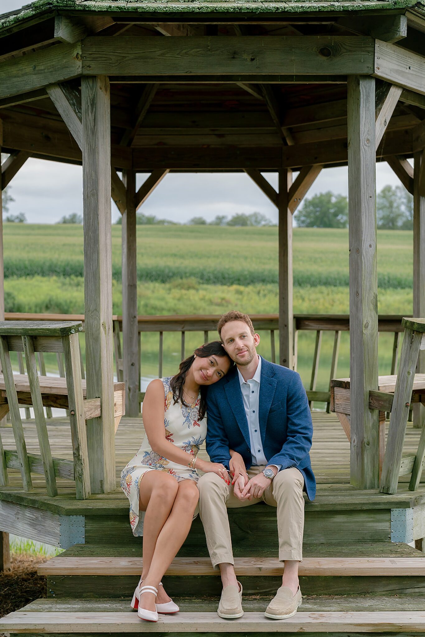 As the evening softened, we traded fields for water. A simple row boat drifted across the lake, evoking a scene straight from The Notebook—refined, cinematic, and timeless. With the stillness of the water and the glow of sunset, the session became both playful and deeply romantic, a portrait of love in its most natural form.