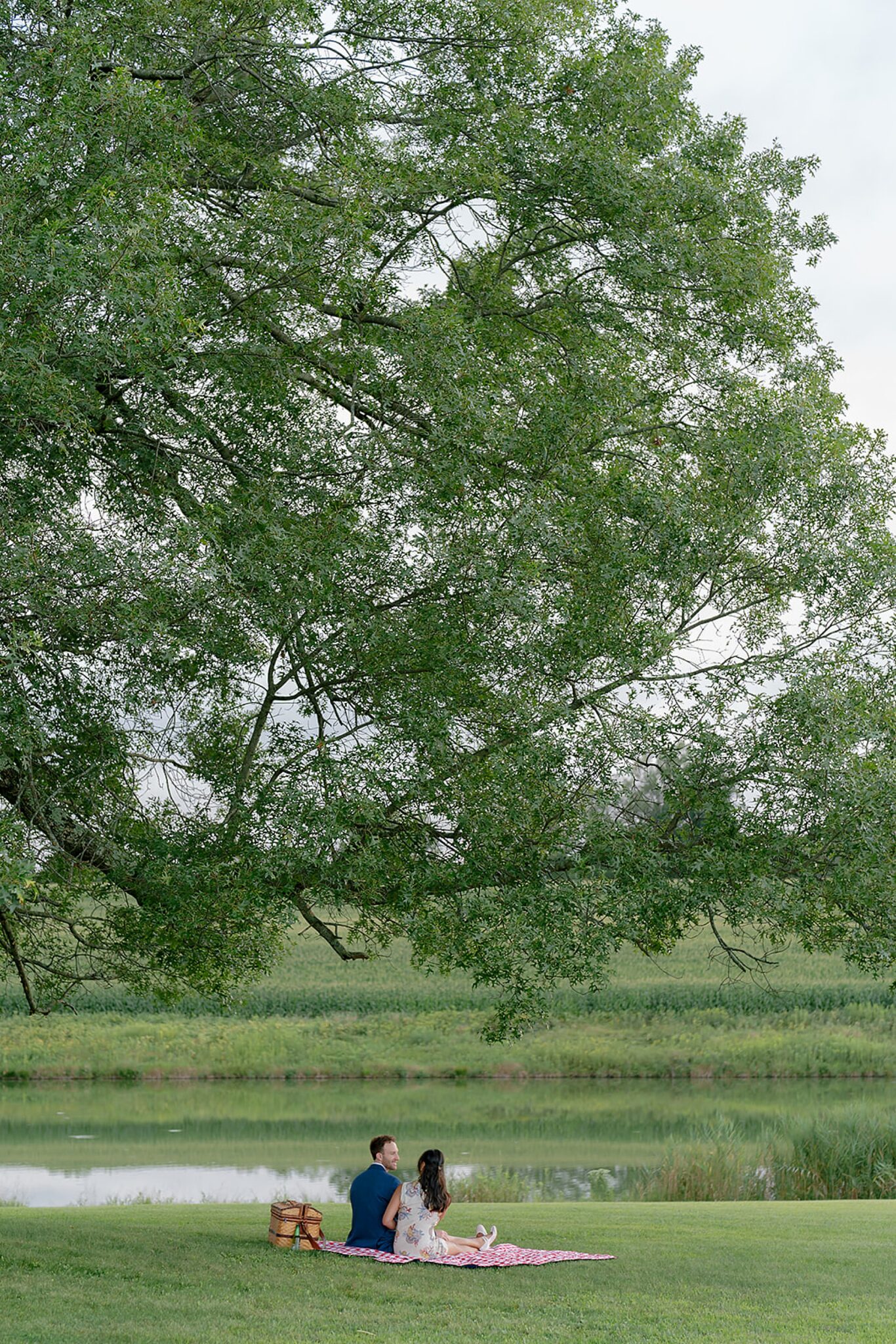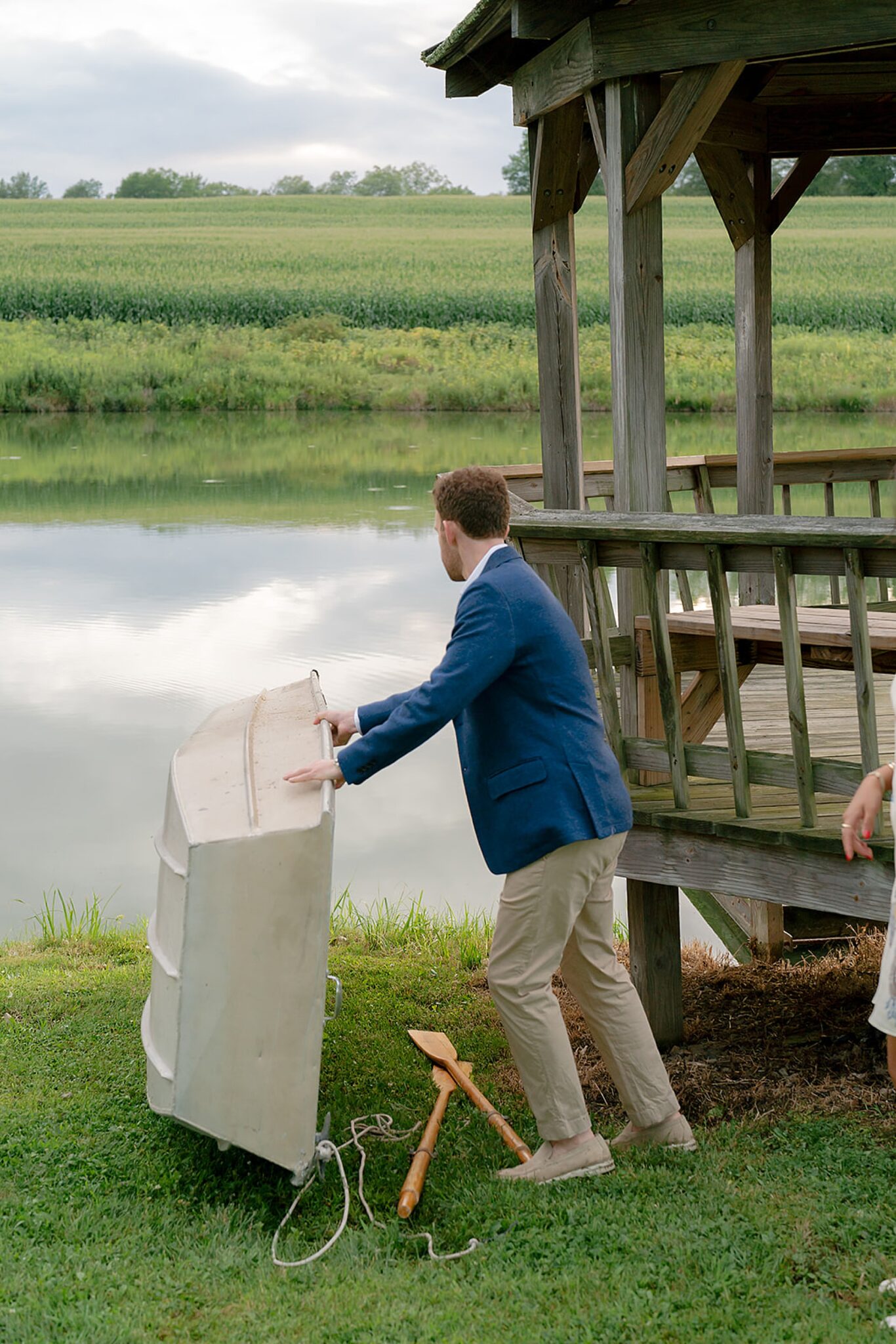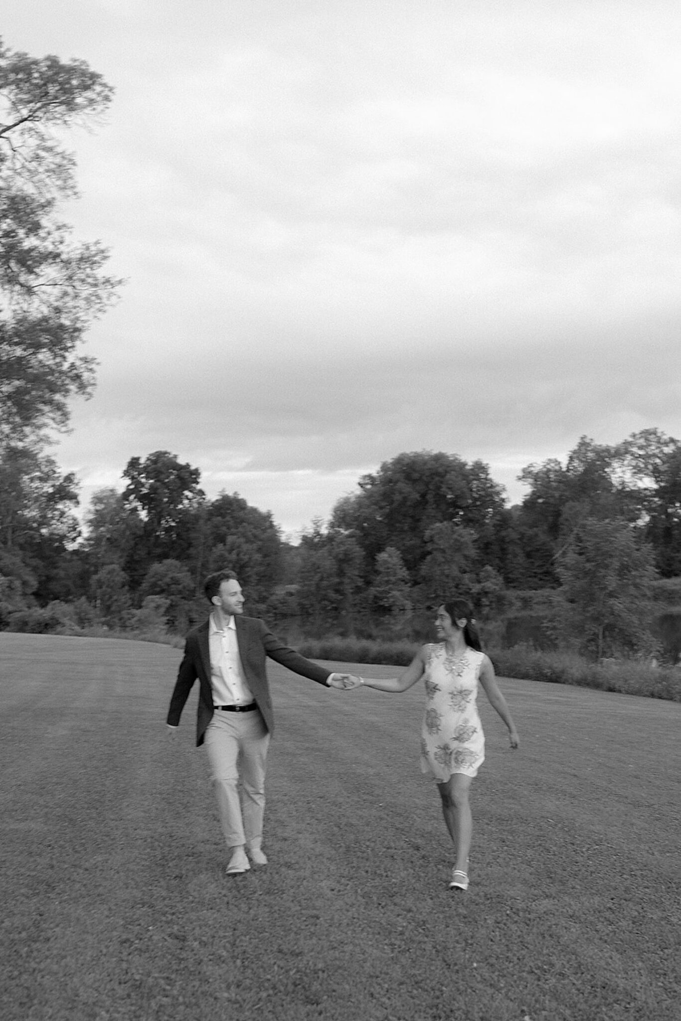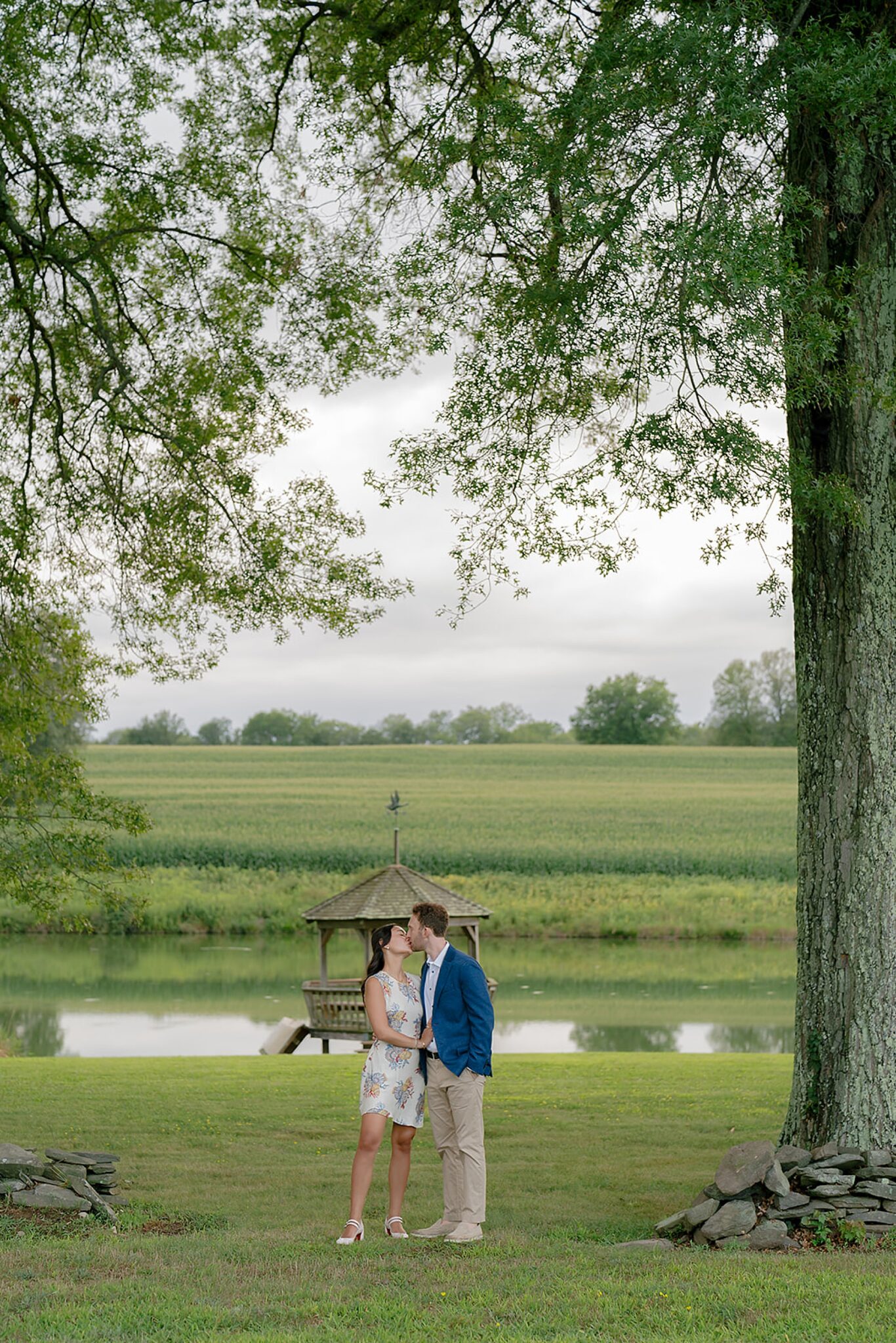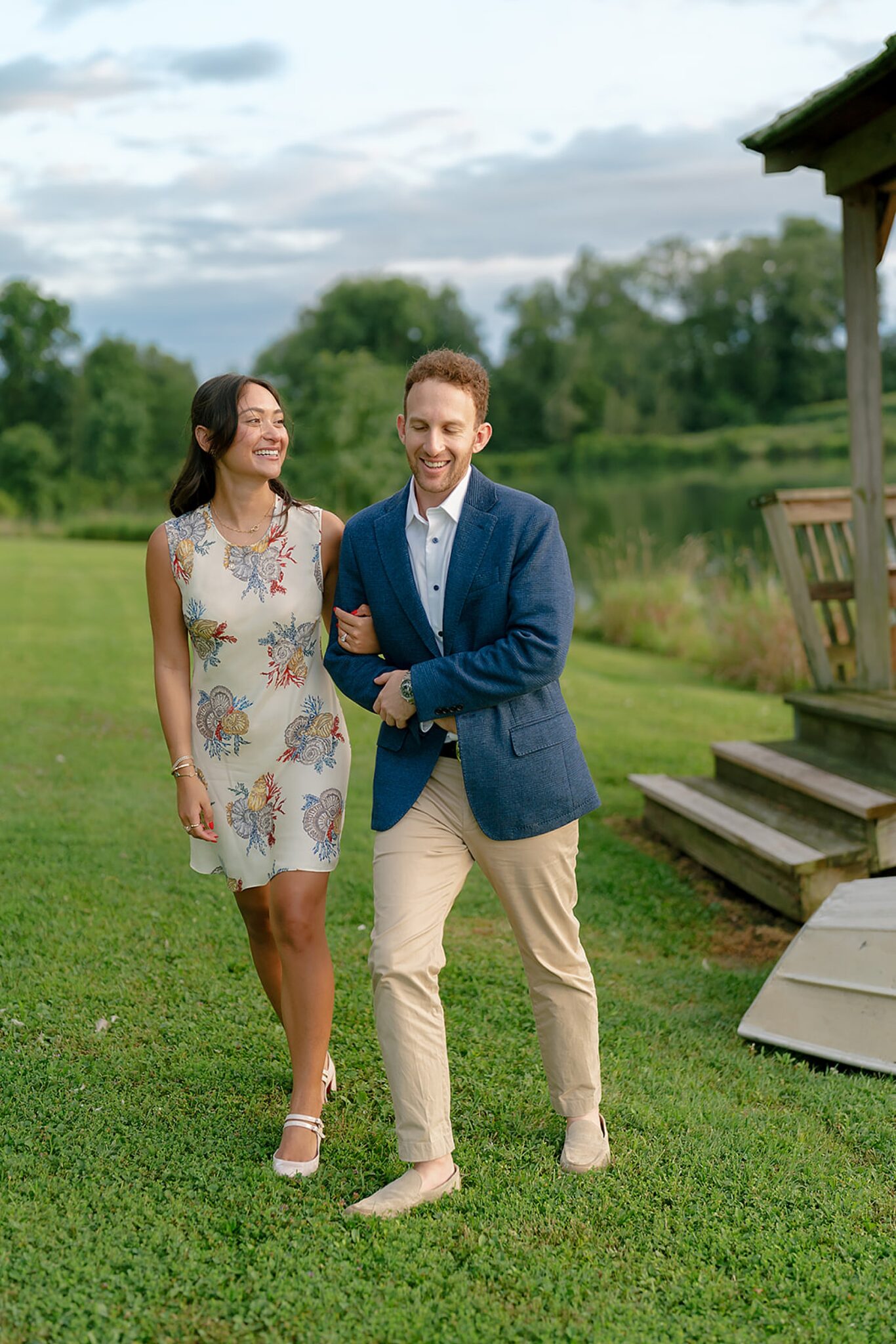 As the evening softened, we traded fields for water. A simple row boat drifted across the lake, evoking a scene straight from The Notebook—refined, cinematic, and timeless. With the stillness of the water and the glow of sunset, the session became both playful and deeply romantic, a portrait of love in its most natural form.