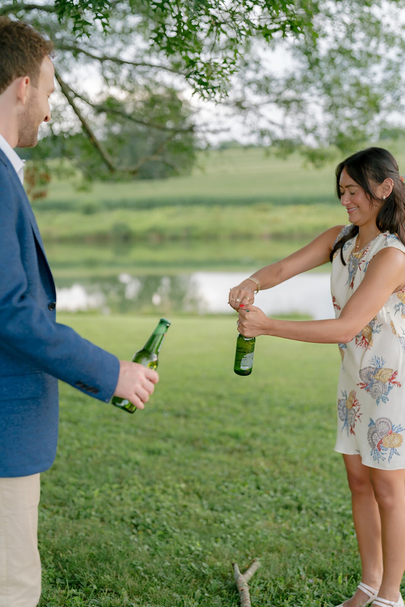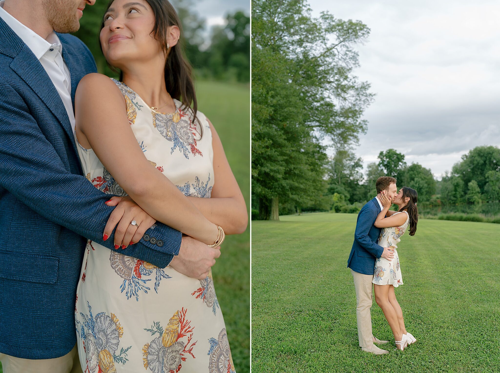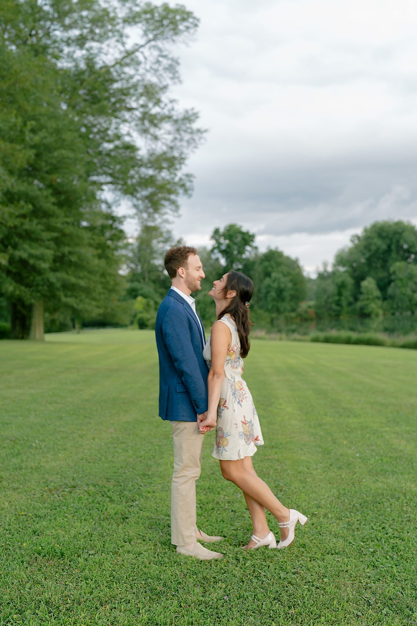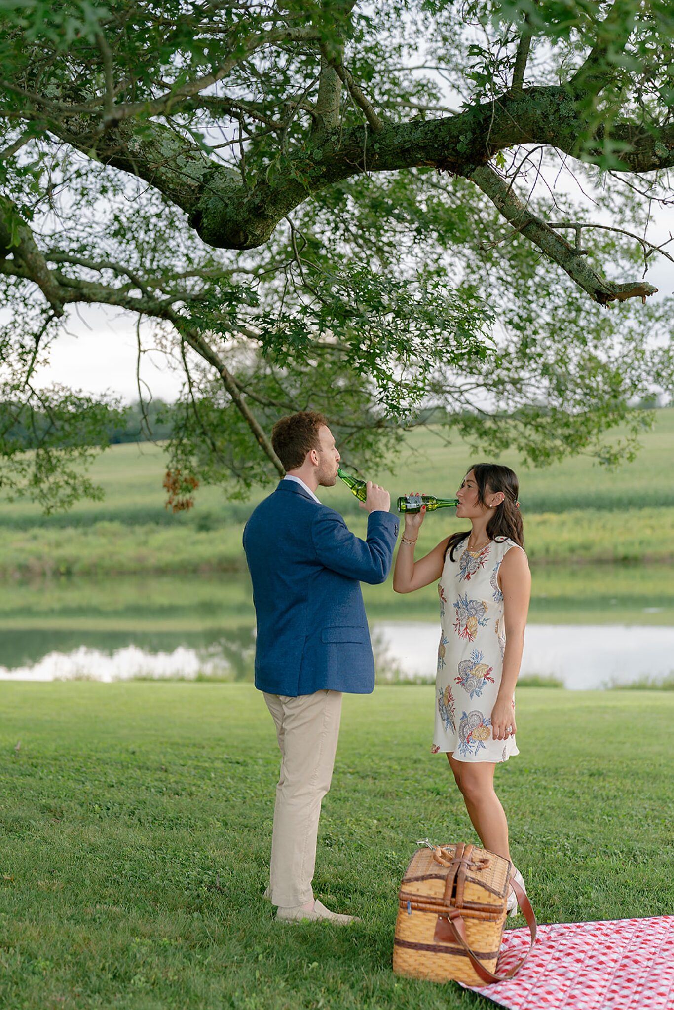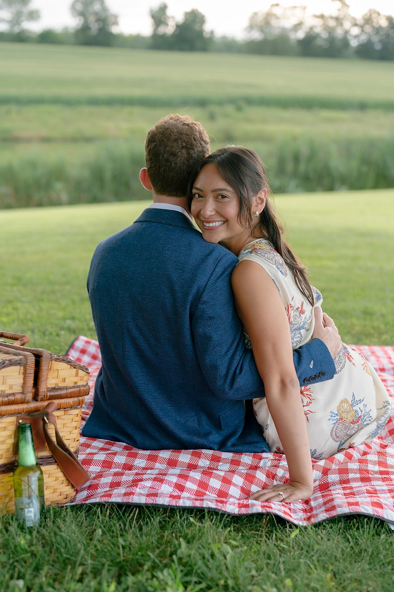 As the evening softened, we traded fields for water. A simple row boat drifted across the lake, evoking a scene straight from The Notebook—refined, cinematic, and timeless. With the stillness of the water and the glow of sunset, the session became both playful and deeply romantic, a portrait of love in its most natural form.