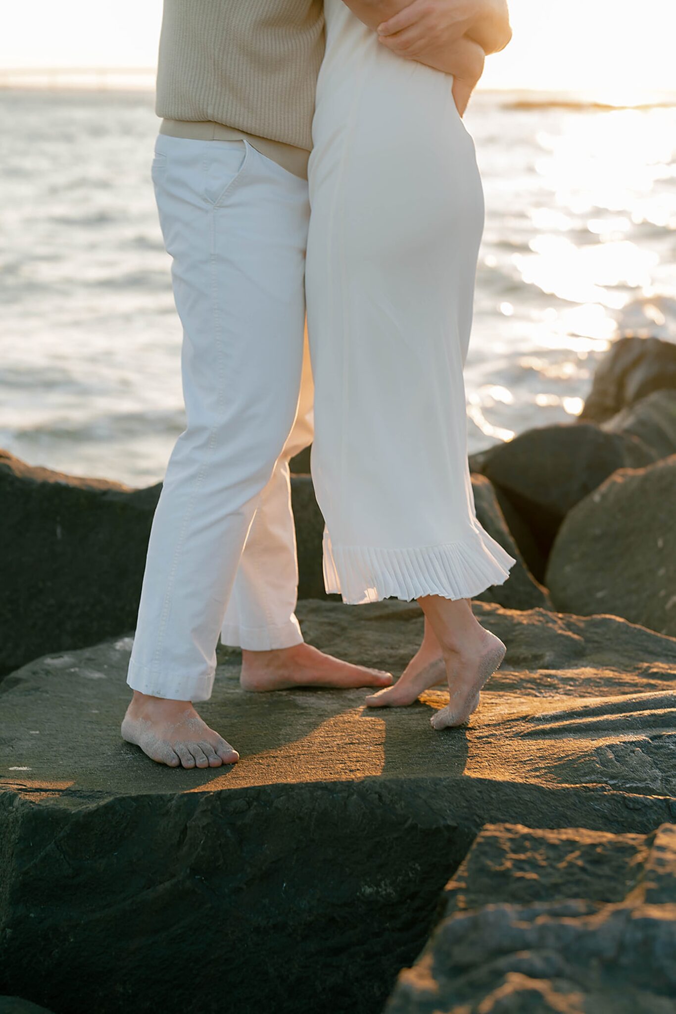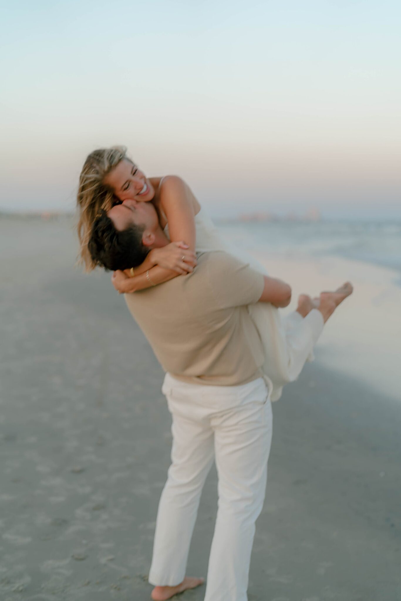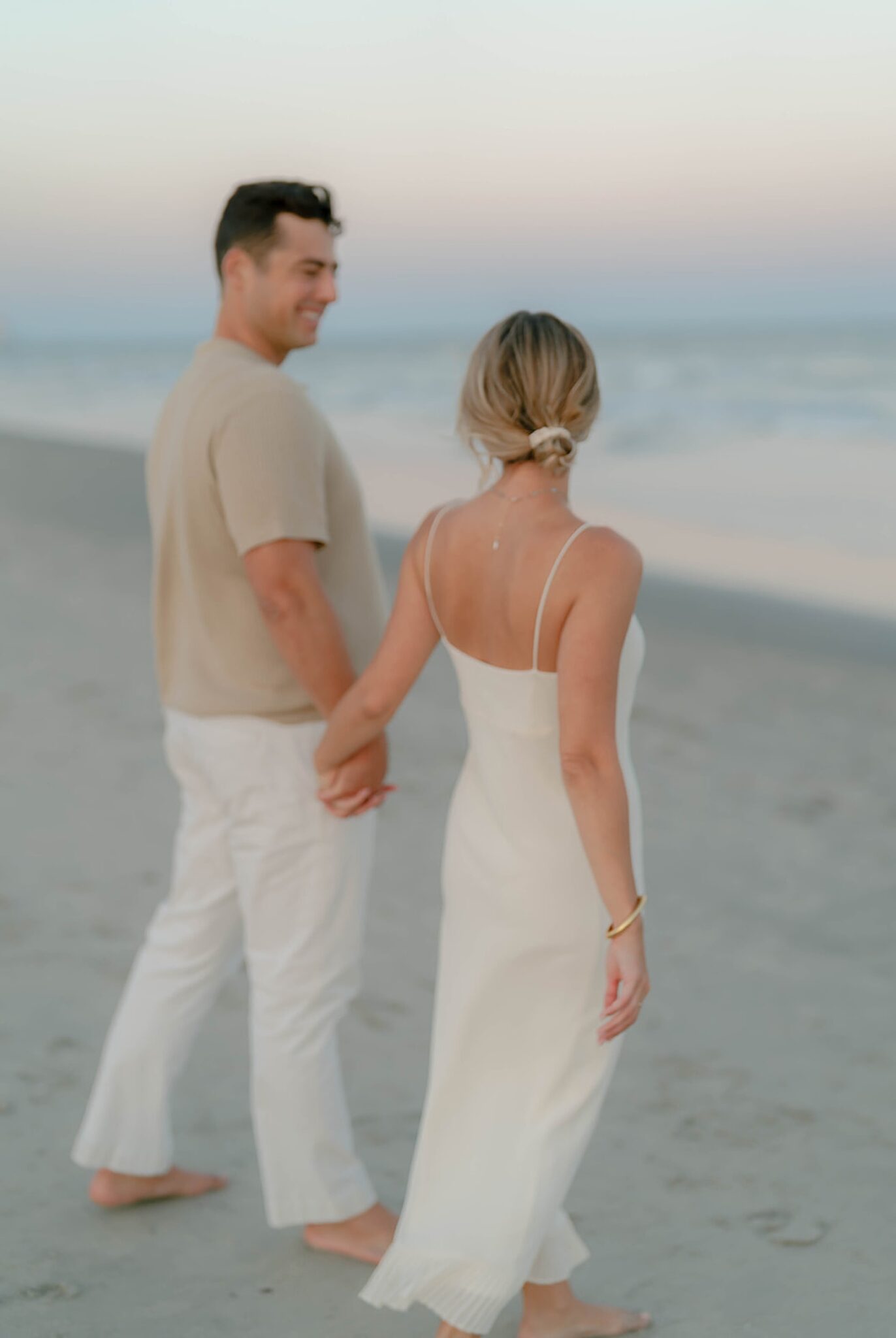 As the day faded, we shifted into something softer—running barefoot into a sunset that drenched the shoreline in gold. Laughter came easily, movement felt free, and every frame carried the effortless joy between them.