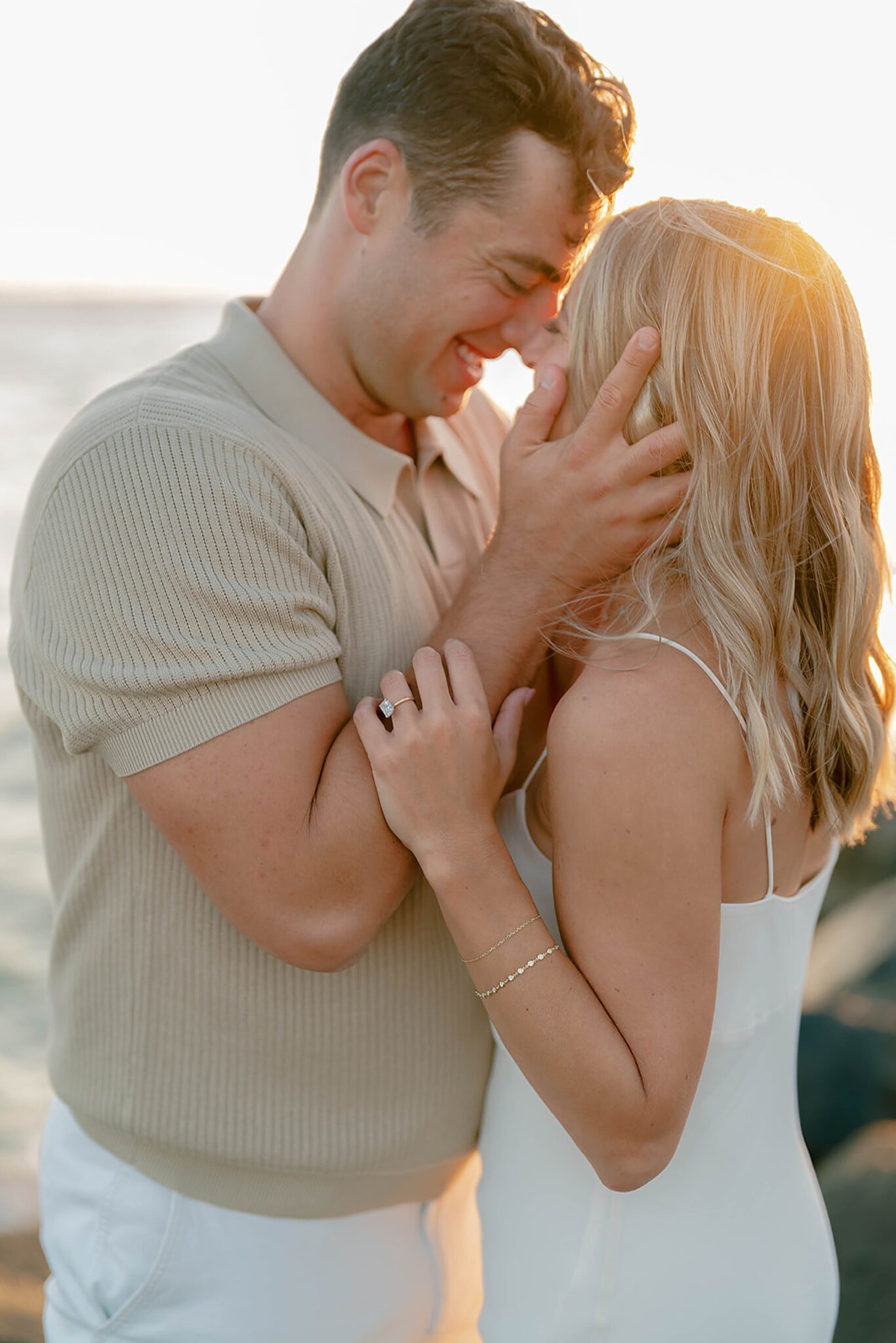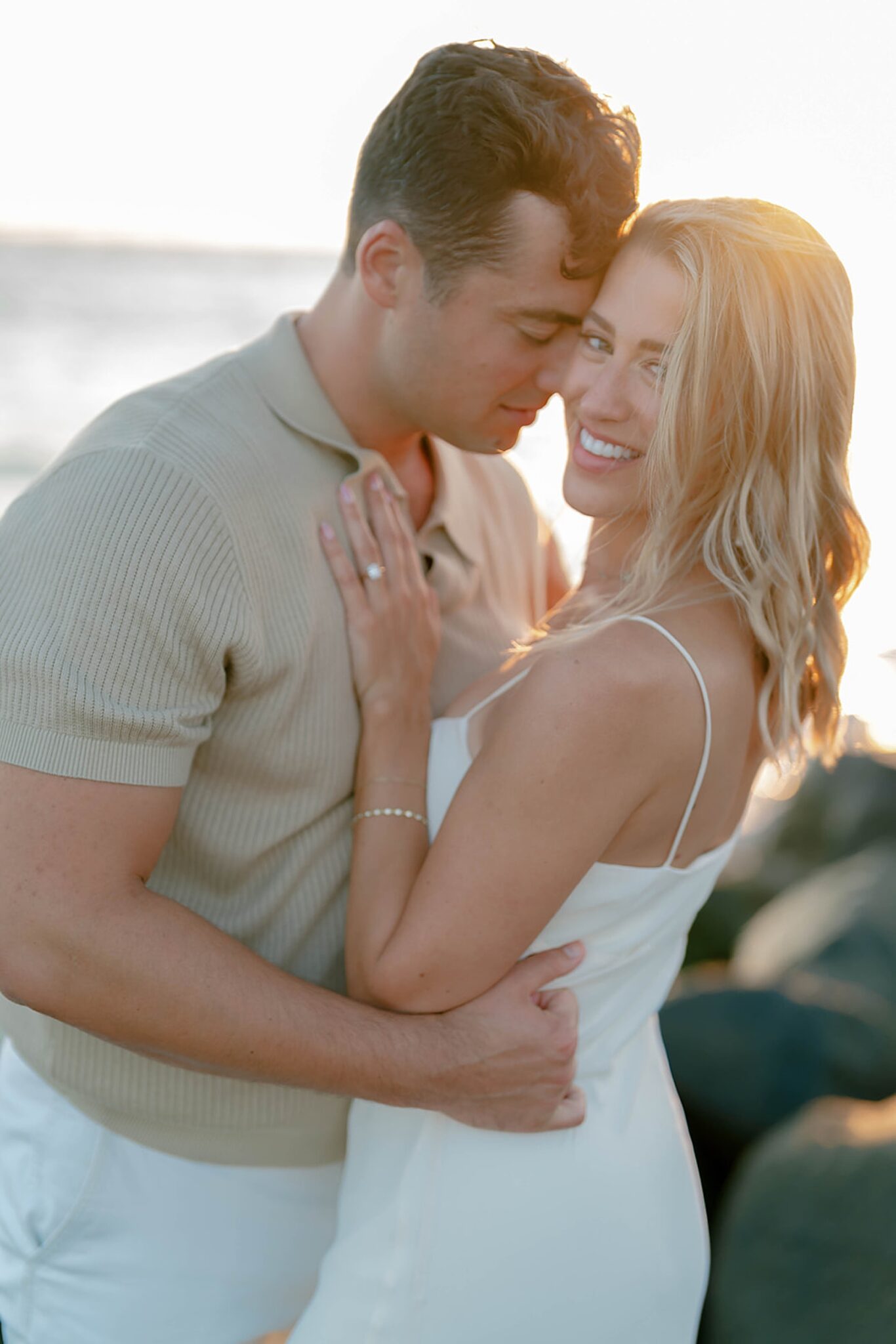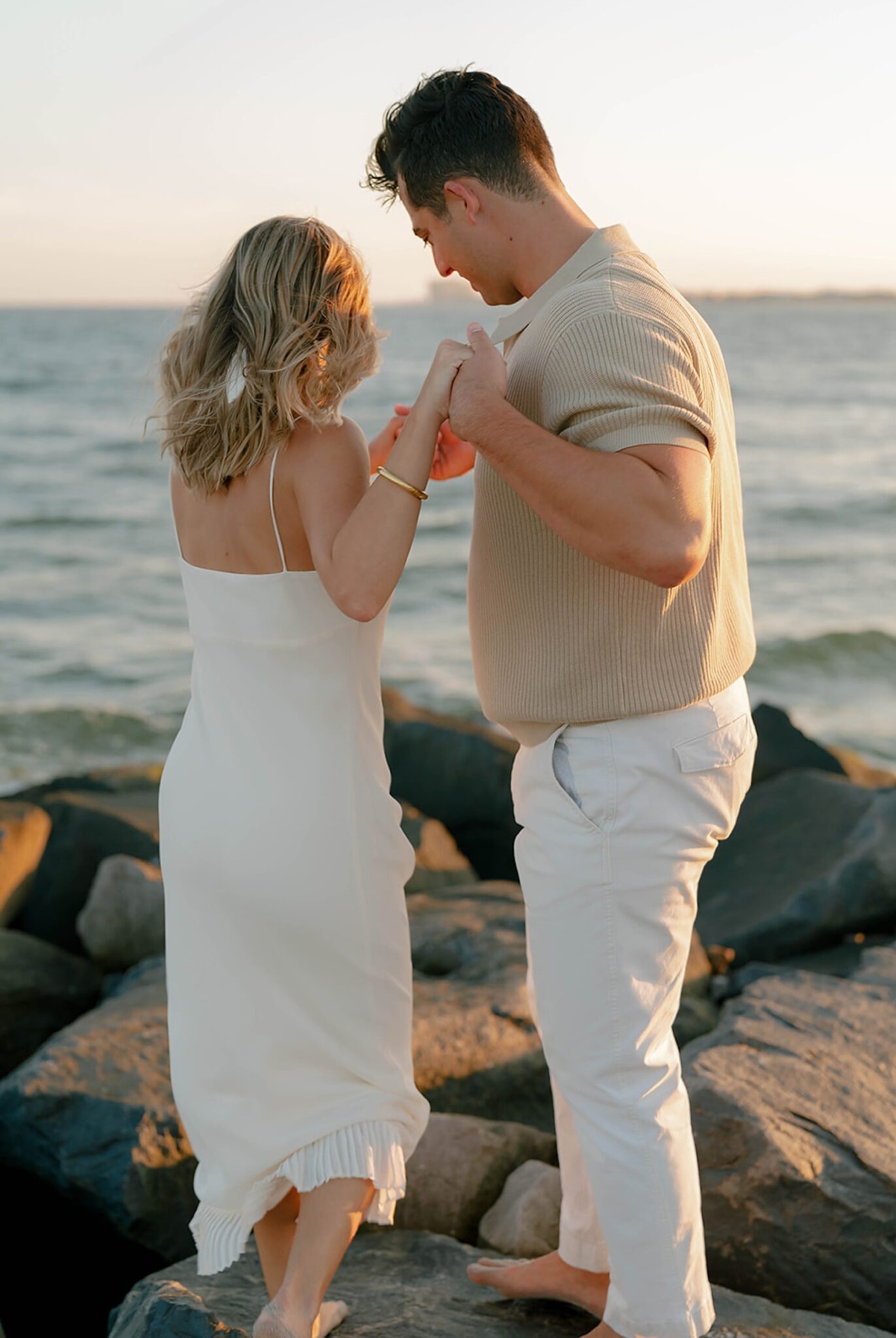 As the day faded, we shifted into something softer—running barefoot into a sunset that drenched the shoreline in gold. Laughter came easily, movement felt free, and every frame carried the effortless joy between them.
